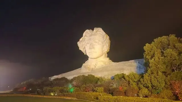 导航显示景区道路属于管制封闭时段,只好把车停到橘子洲大桥头的潇湘中路上,途虎养车工场店门口,经橘子洲大桥徒步进景区。江东岸建筑群灯光秀图案变换,流光溢彩,光影艳丽,橘子洲大桥桥洞灯光照亮了江面。江水偏把他们的影子全揉碎,如梦似幻。烟花时不时轰然绽放,东风夜放花千树,更吹落、星如雨。而对岸的岳麓山,就显得很安静。橘子洲一派节日盛装,打扮得真出彩。坐在观光小火车上,晚风还是挺凉的,挡风帘可以下拉,这设计得挺好。毛主席青年像前广场人山人海。遥想当年,意气书生指点江山,激扬文字。多少年来让多少人充满钦敬仰止之情。晚上光线不好,拍照时别忘打开手电筒往自己脸上补点光。再往前走是望江亭,这里才是与毛爷爷合照打卡的黄金位置,自带画框。可惜大家还是喜欢往人多的地方挤,有时候退几步才发现退的好处。很快晚上十点了,望江亭广场灯光关闭,一天的繁华落幕。橘子洲景区免费,需要提前预约。景区小火车可以提前网上购票,乘车前核销。线下也可以直接购纸质票,儿童半价。在地铁站旁的游客服务中心,可以凭小火车票领取明信片,免费盖旅游纪念章。岳麓书院还有中南大学、湖南大学、湖南师大都应该在岳麓山那边的夜色下,历史上赫赫有名的四大书院之一还是值得带孩子去感受感受的。可惜这次我们打长沙走过,没有怎么游,只是个吃货……静谧的岳麓山,岳麓书院还有中南大学、湖南大学、湖南师大都应该在那片夜色下。望江亭才是与毛爷爷合照打卡的黄金位置,自带画框。可惜大家还是喜欢往人多的地方挤,有时候退几步才发现退的好处。住宿宜尚酒店,住宿体验很好