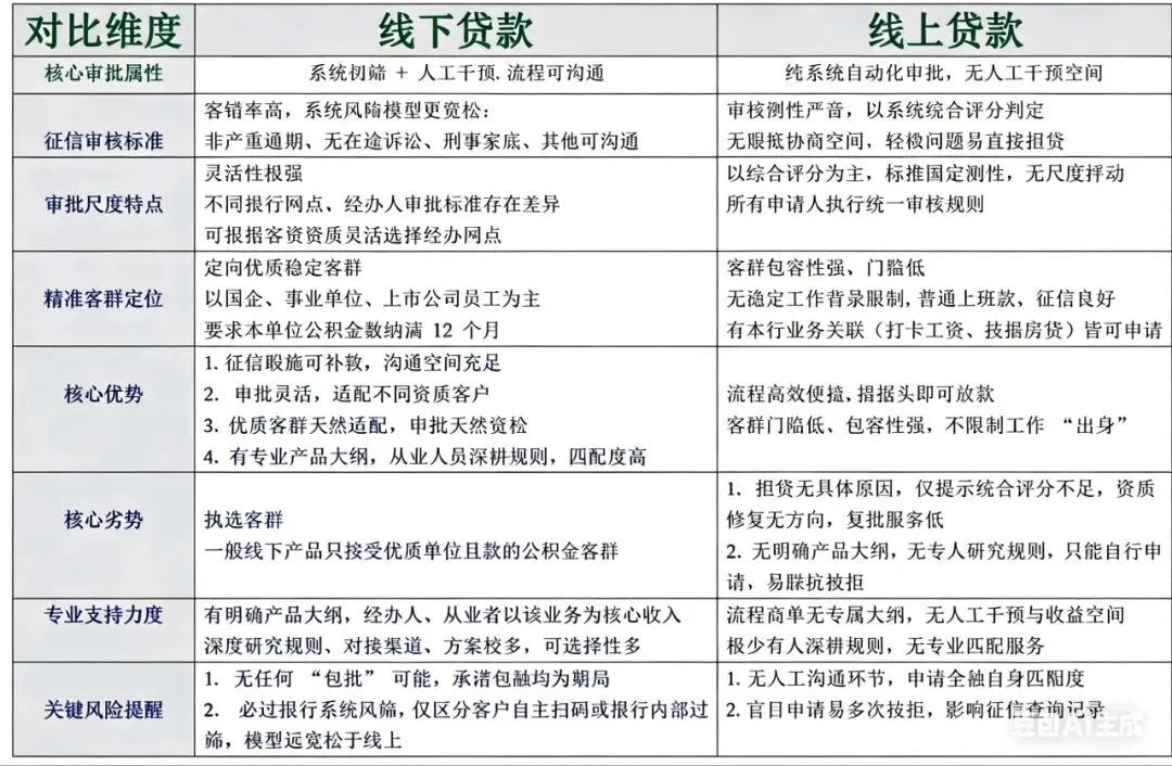 刚好,我最近成功给几个客户,走线下人工审批,都成功放款了,有四大行的,也有消费金融的,所以,今天来梳理一下:线上和线下,为什么通过率差别这么大,核心原因在哪里?