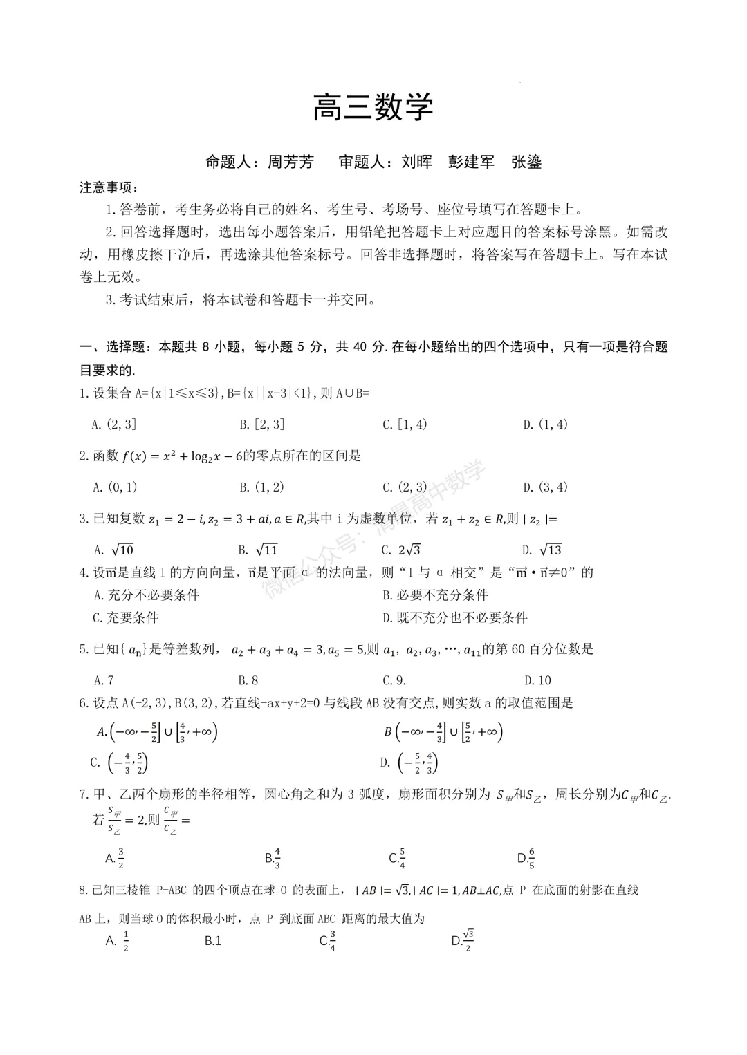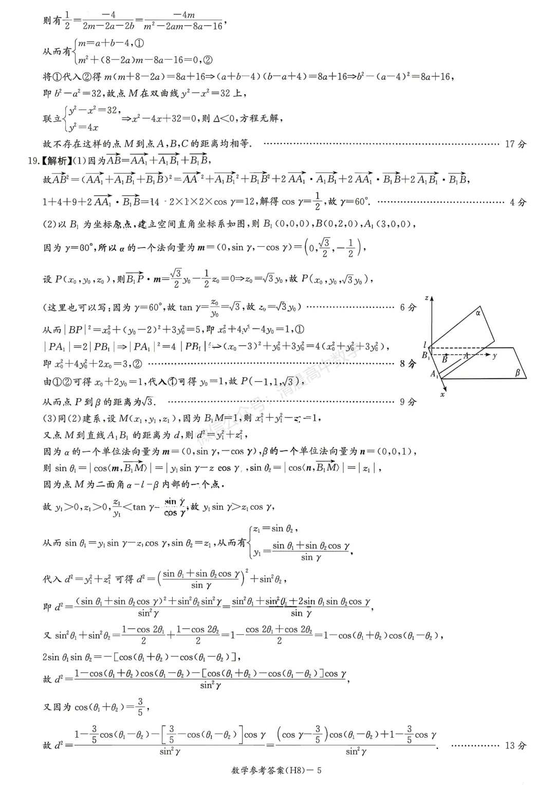 >【高三】湖南省长沙市雅礼中学2026届高三下学期月考(八)数学含解析(pdf版)