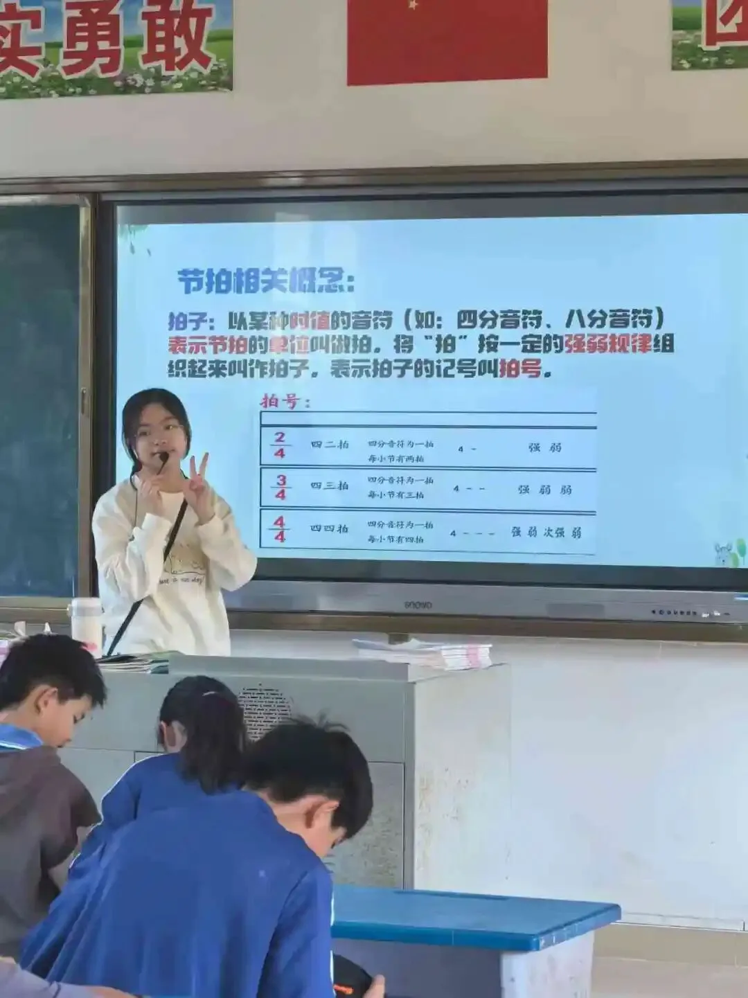音乐课堂轻松愉悦,充满歌声与欢笑。陈庆灿老师围绕音乐节奏展开教学,通过节奏游戏、歌曲学唱与手势舞练习,让孩子们在轻松的氛围中感受节拍与韵律,体会音乐带来的快乐;课堂生动有趣,孩子们积极参与互动,在歌声与律动中释放活力、感受艺术之美。