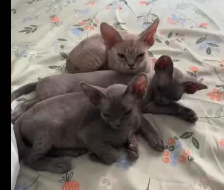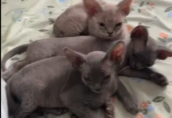 编号:0507-03***【长沙】家养德文生的崽崽,1月30号出生,2个月,一公2母,(蓝色的有一只是公的),疫苗打了一针,有疫苗本。毛色很正,纯种德文,性格好,聪明,猫咪健康。现1400一只出,地址,西安市沣西新城,可发托运(托运费自理)
