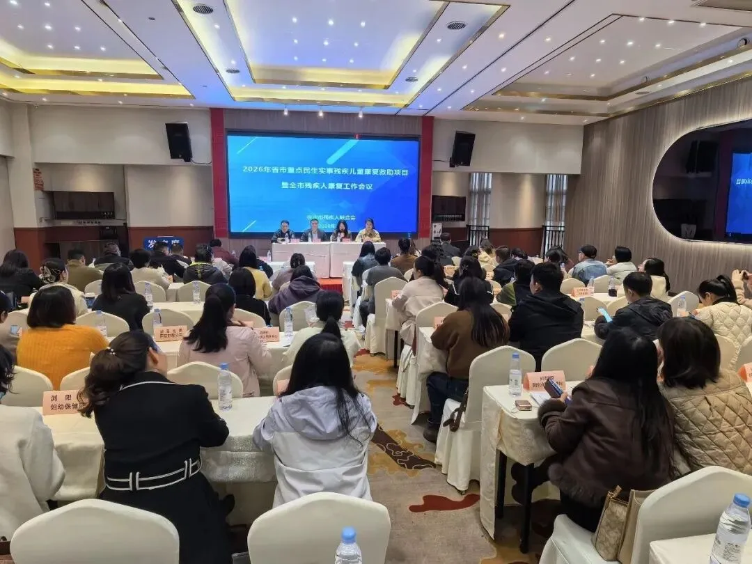 近日,长沙市2026年省市重点民生实事残疾儿童康复救助项目暨残疾人康复工作会议顺利召开。市残联党组副书记、副理事长曾军出席会议并讲话。全市残疾儿童定点康复机构负责人、区县(市)残联相关负责人及第三方监测团队参加会议。长沙市天心区星语林特需人士服务中心负责人陈思代表机构参会,认真学习领会会议精神。