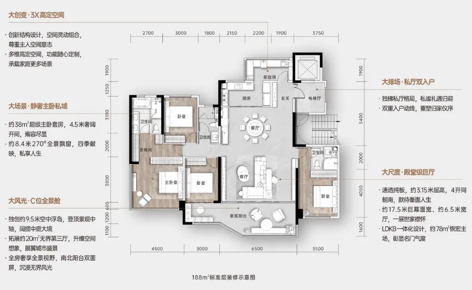 ,这是新开铺板块最听话的楼盘,全小区143、188两个户型,新规双学区,188平总价约