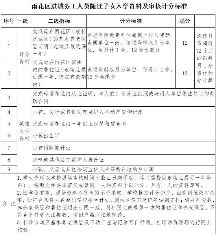 7月8日-10日,第5类适龄儿童现场审核。审核地址为区内有进城务工人员随迁子女招生指标的公办学校(具体学校名单6月30日左右在雨花教育微信公众号查询)。现场审核需同时提供原件和复印件,详见下面《雨花区进城务工人员随迁子女入学资料审核积分标准》。