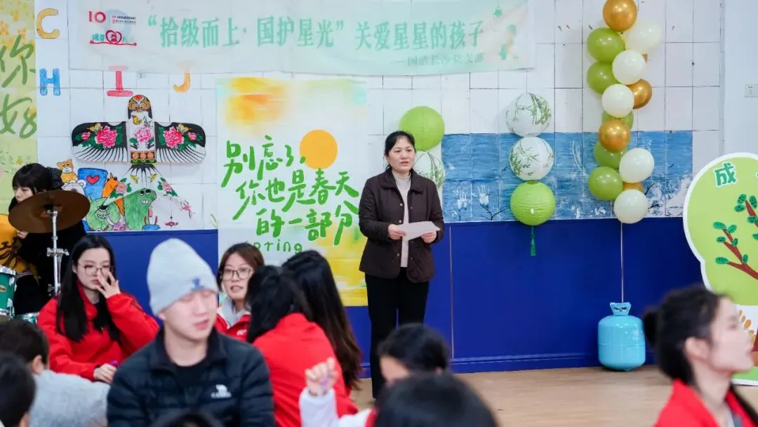 活动现场处处洋溢着温柔与美好。孩子们手腕系上象征关爱与包容的蓝丝带,在“成长树” 上轻轻贴上写满祝福的心愿树叶,用最纯真的方式,迎接这场专属他们的温暖约会。下午两点半,活动在主持人温暖的开场中正式拉开帷幕。机构负责人陈思主任首先发言,感谢国浩律师(长沙)事务所多年来对星语林和特殊儿童群体的持续关注与支持,也感谢每一位志愿者愿意花时间走进孩子们的世界。