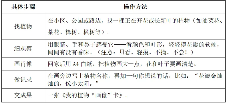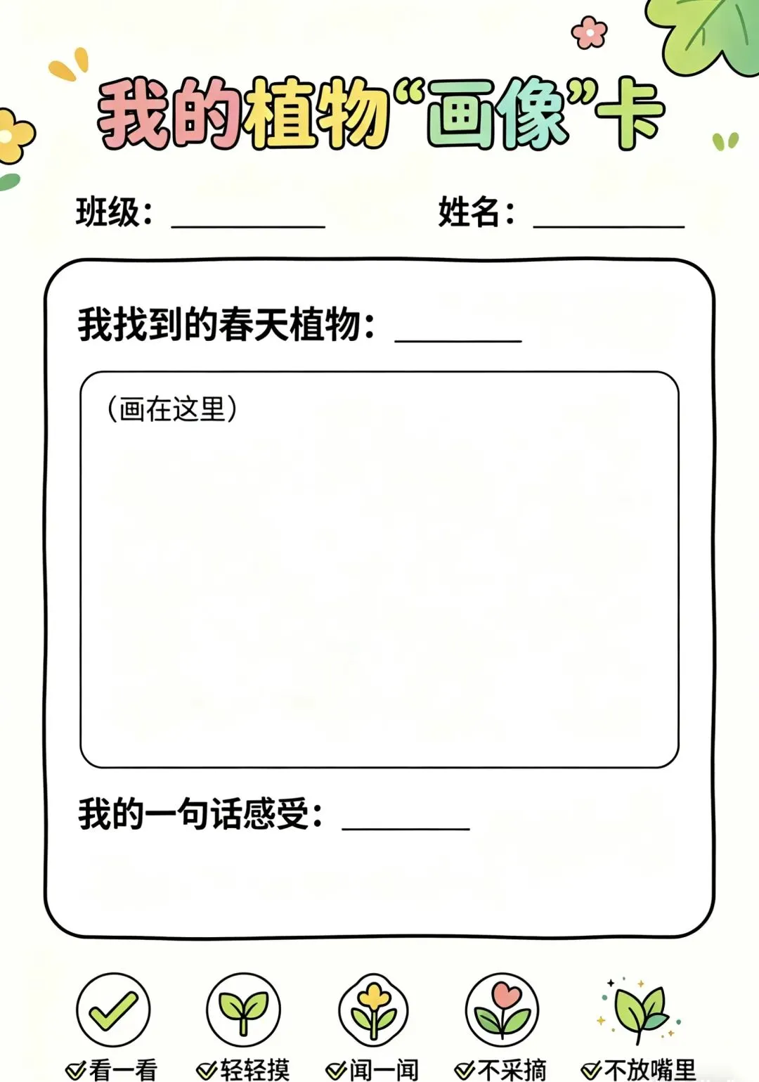 1. 安全第一:鼓励家长陪同孩子参与,不前往偏僻区域,不触碰有毒植物(如夹竹桃),不随意采摘野生植物。