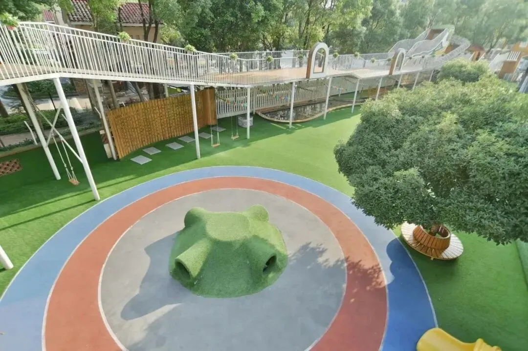 3000多平米的大型户外活动场地,除操场和游乐组合设施外,还设有二十多项功能的大型喜鹊、环廊、环山足球场、玩沙区、室外水系、专业平衡车赛道、蚁穴等户外探索游玩区。