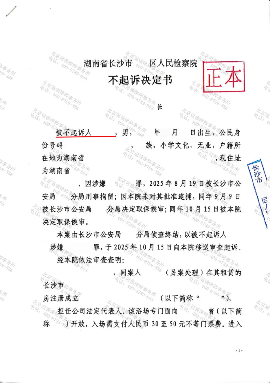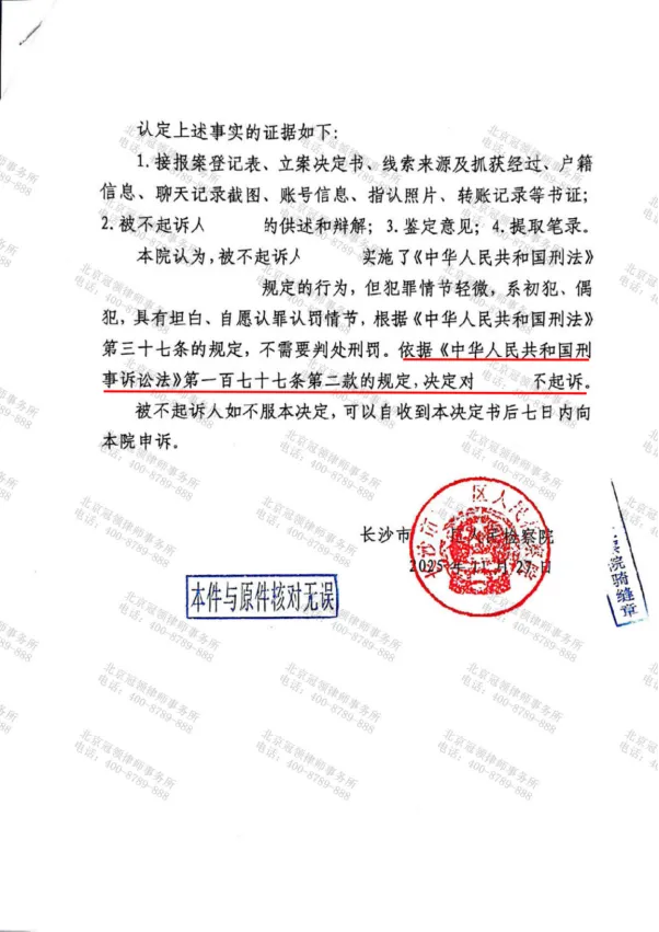 湖南长沙男子李某被社交平台上的宣传吸引,几度踏入一家隐藏在市区的“特殊浴场”。2025年8月中旬被警方现场抓获,在北京冠领(长沙)律师事务所专业律师的辩护下,检察院对其作出不起诉决定。