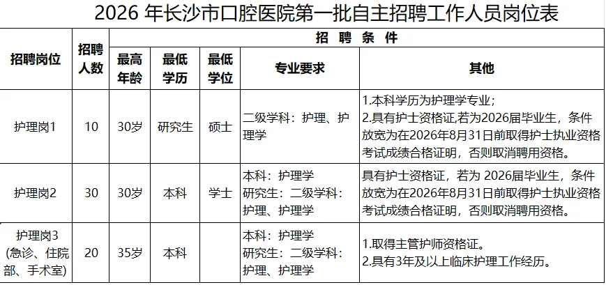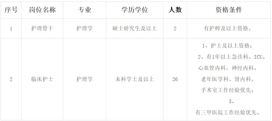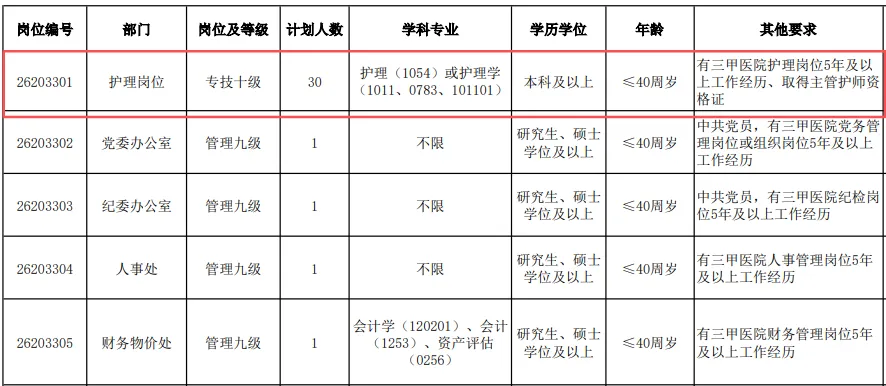 1、学历专业:本科及以上护理学或助产学专业(2026届应届毕业生优先),需在2026年7月31日前取得毕业证、学位证;