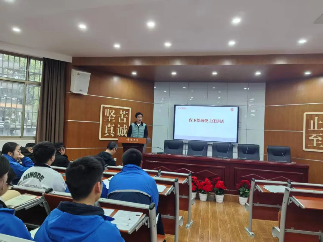 3月20日,明德中学安全保卫科联合教育处,组织召开首届班级安全委员培训会。教育处主任陈余勇、安全保卫科主任颜俊、安保公司经理杨柳、龙祥队长及全校班级安全委员共同参会。