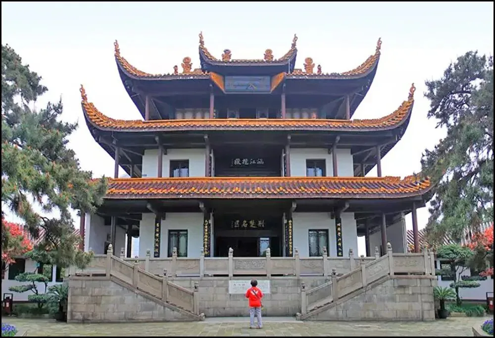 杜甫江阁位于湖南省长沙市湘江风光带上,紧邻湘江,与橘子洲头、岳麓山隔江相望,是长沙著名的文化地标之一。这座仿唐风格建筑始建于2002年,为纪念唐代“诗圣”杜甫而建,2005年正式对外开放。江阁高约42米,主体