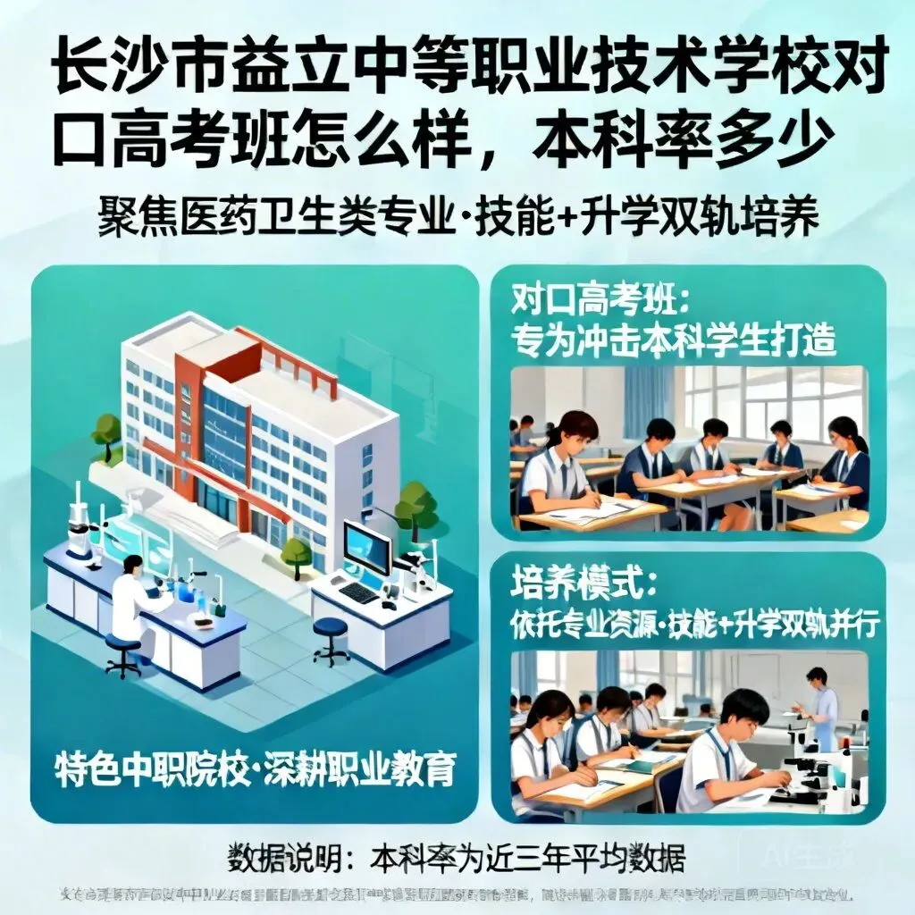长沙市益立中等职业技术学校是一所聚焦医药卫生类专业的特色中职院校,深耕职业教育多年,其对口高考班专为有志于通过中职升学路径冲击本科的学生打造,依托学校的专业资源优势,形成了“技能+升学”双轨并行的培养体系。
