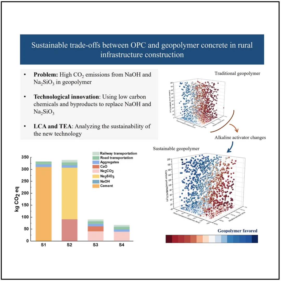 减少建筑行业的碳排放对于实现气候目标至关重要,然而,由于成本、性能和实用性方面的顾虑,尤其是在农村地区,进展往往受到限制。随着中国的发展重点从大型城市项目转向农村基础设施,如道路和公共设施,普通硅酸盐水泥仍是主要的建筑材料,也是温室气体排放的主要来源。