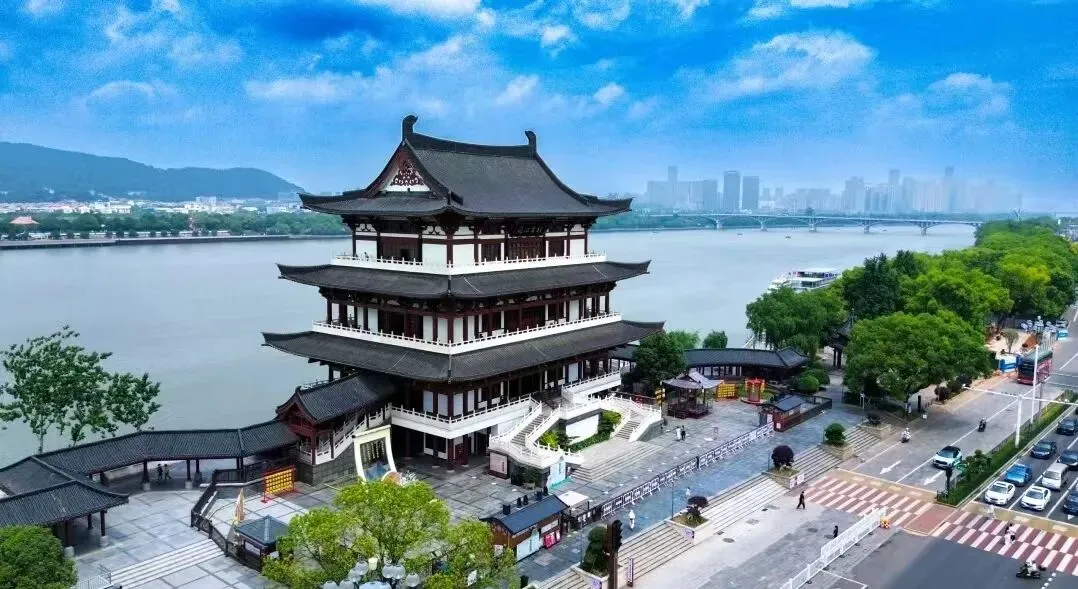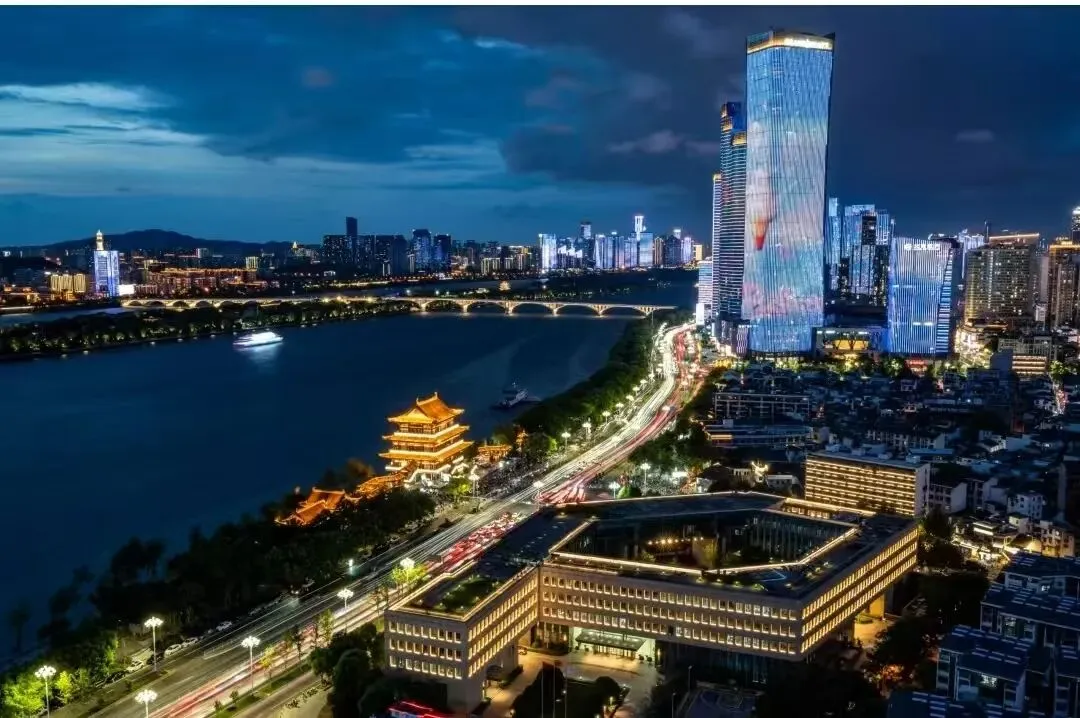 长沙杜甫江阁夜景如画,灯光映古建,似闻历史低语。湘江水悠悠,带人暂离尘嚣,心生诗意与远方。