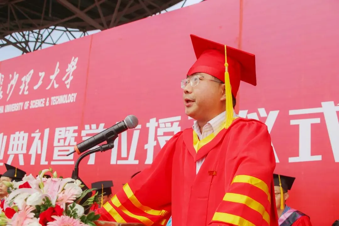 母校愿做你们追逐梦想的坚实依靠。遇到困难的时候,可向师长求教良方;力不从心的时候,欢迎返校重归课堂;不愿奔波的时候,想想自己为什么背上行囊!你们是高飞的风筝,母校永远是那根连着风筝的线。今天,老师们将为你们轻拨流苏、授予证书,目送你们奔赴火热的建设现场,往后母校的荣耀就系在大家身上,由你们为母校代言。