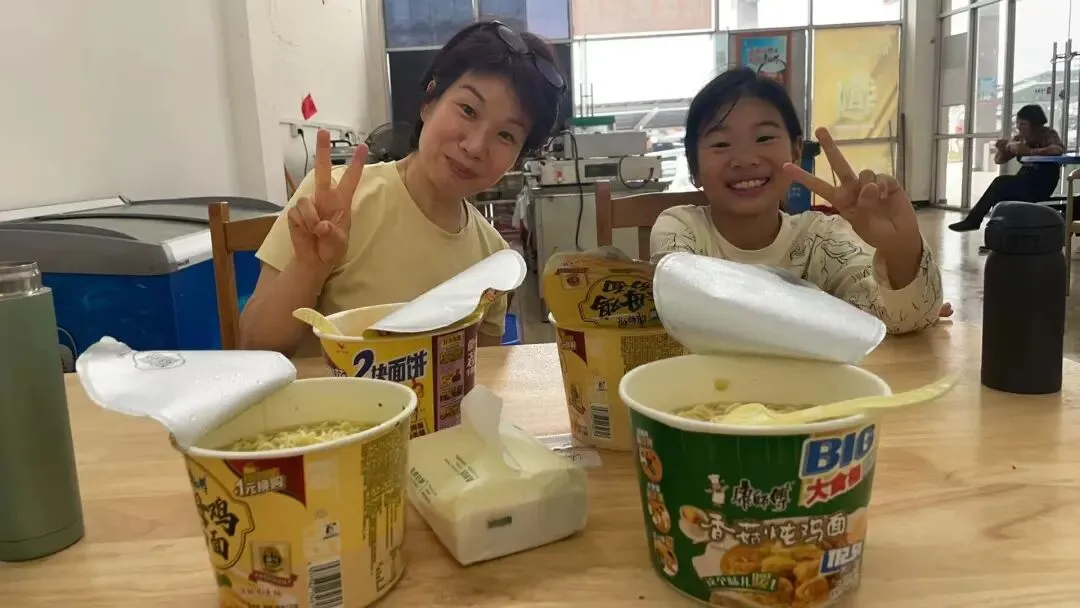 回程在进入广东后,车流量大开始堵车,预计9小时的路程开了13个小时,还有服务区的餐饮服务也跟不上节奏,这时一碗泡面将我们疲惫都驱赶了,奶奶说:“这是她吃过最好吃的面。”爸爸说“旅行最香的永远是最饿时的那一口”。我们捧着纸碗碰杯,服务区的白光忽然有了家厨房的暖意。