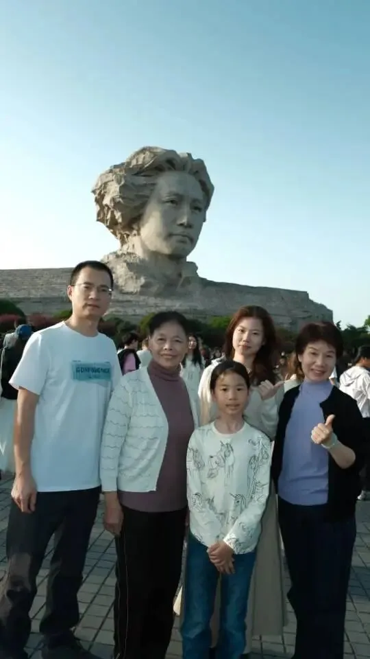 下午回到客栈休息休息,3点半转到橘子洲头,青年毛泽东雕像的头发仿佛仍在飘动,请人为全家合影,镜头框住伟人望向远方的目光,也框住我们被风吹乱的头发。“独立寒秋,湘江北去”,他念出石刻上的诗句,声音混在江轮的汽笛里。那一刻,历史不是课本铅字,而是拂过皮肤的、湿润的风。晚上的湘江夜游,是这场旅程最浪漫的加冕——乘船而行,两岸高楼化身巨幕,光影流转,像打翻了调色盘;毛泽东青年艺术雕塑在夜色中静默守望,对岸霓虹倒映江面,波光与灯影共舞,仿佛整座城市都在为你点亮。爸爸带着女儿在船头,指给她看远方船影:“那是毛爷爷年轻时游过江的地方。