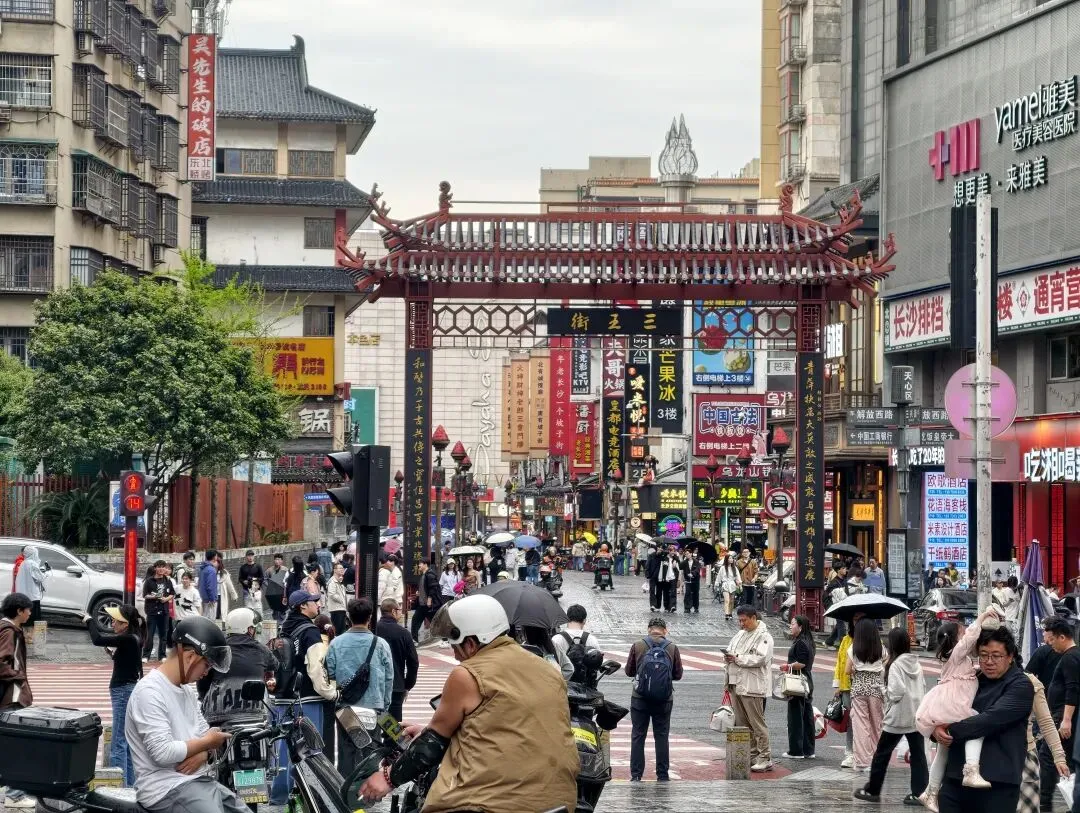 紧靠着火宫殿,人流密集,小吃、娱乐、各类店铺集中,商业发达,是“网红长沙”的重要打卡地。