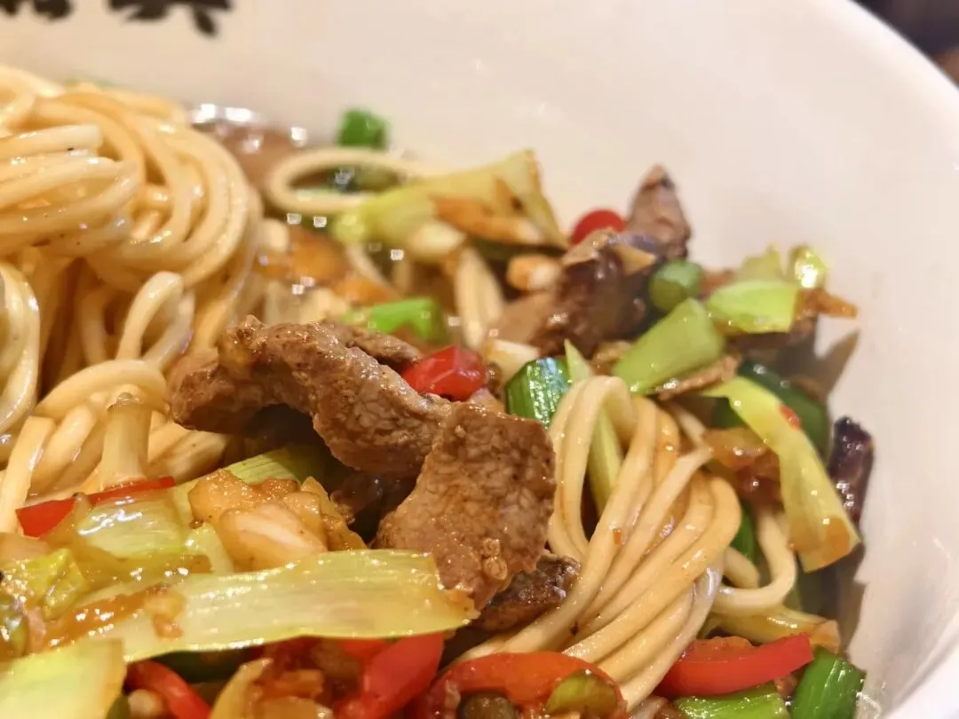 肉丝汤面让舌头瞬间找回从前的感觉,面条入口不滑不腻,软硬适度,富有韧性。