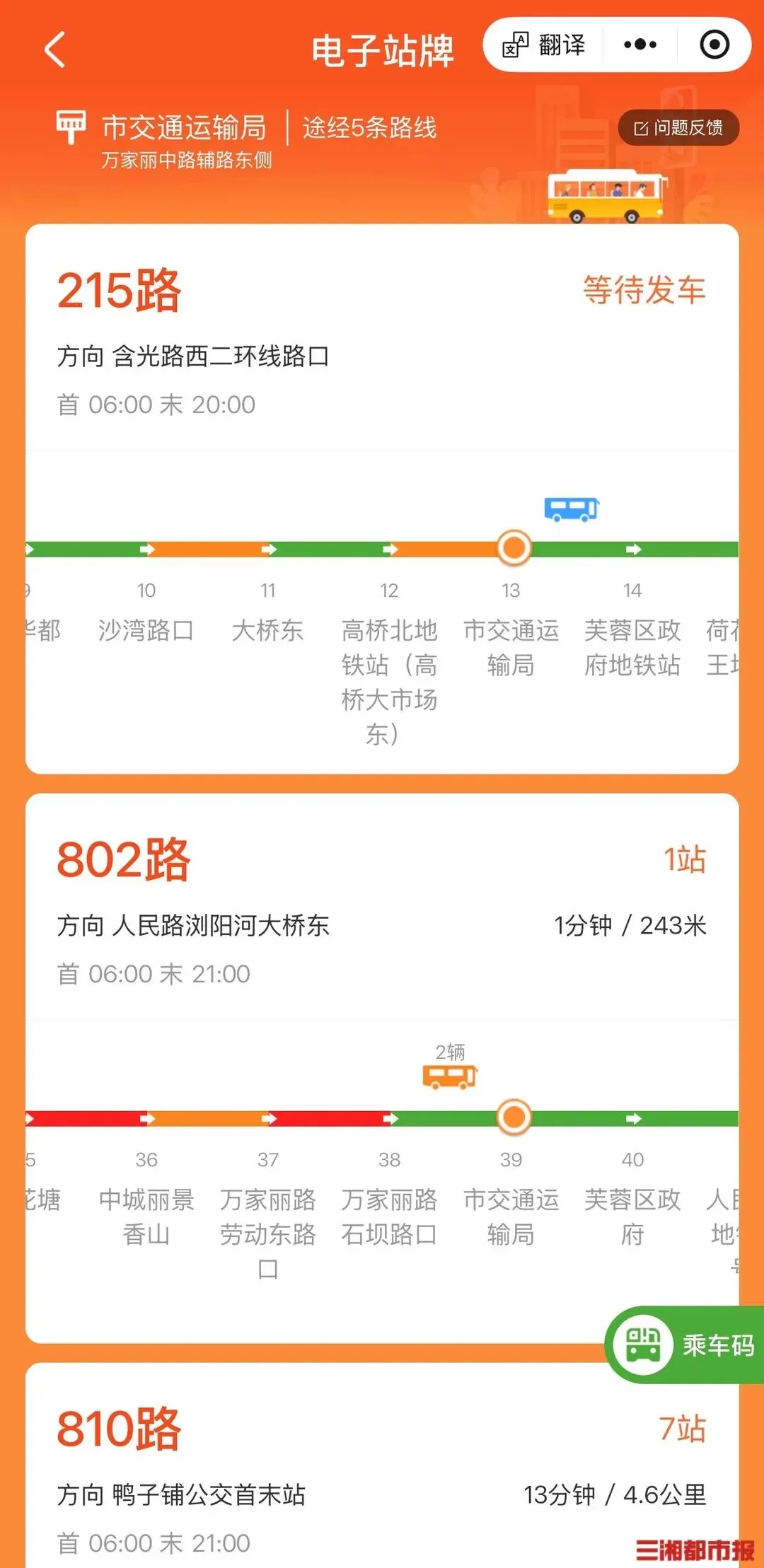 除核心的实时公交查询功能外,站牌配套二维码还衔接了长沙综合出行服务。市民可通过扫码跳转至相关平台,了解定制公交、公交地铁换乘、出行优惠活动等信息,配合湘行一卡通等应用,实现一站式公共交通出行体验。