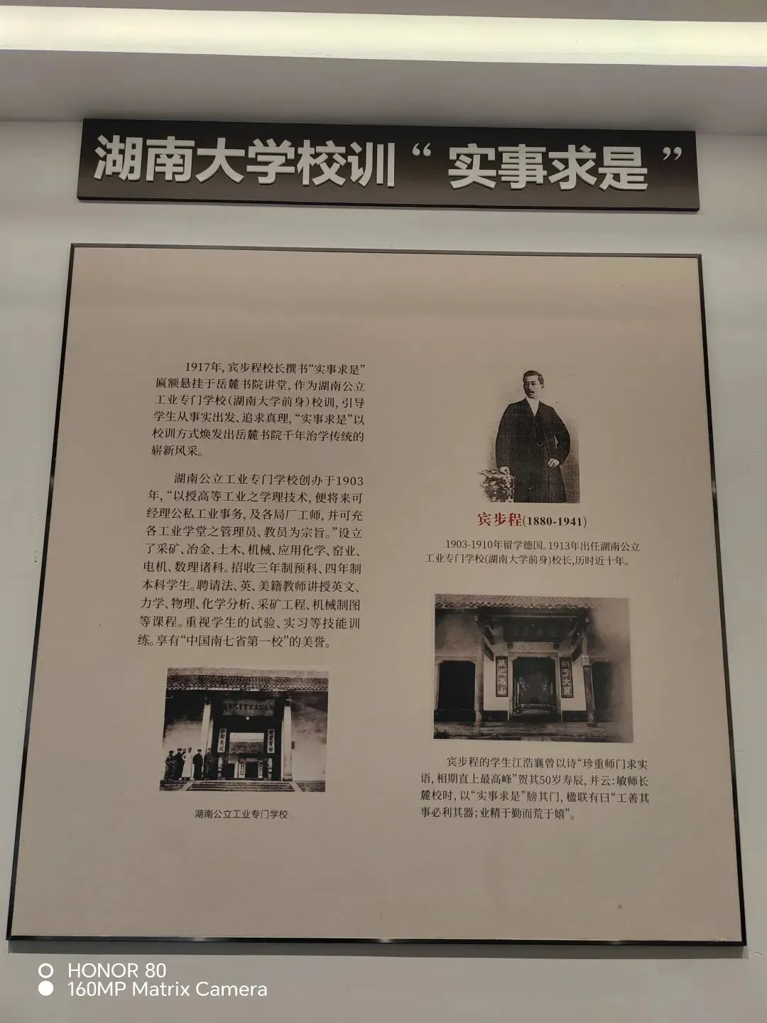 据文献记载,1916年至1919年,毛泽东曾寓居岳麓书院的半步斋,每天面对“实事求是”的校训匾额,思考这个中国古老的命题。1937年毛泽东为延安抗日军政大学(抗大)题写“实事求是”四个大字作为校训。这四个字后来成为毛泽东思想的精髓,中国共产党人领导新民主主义革命取得成功的制胜法宝。