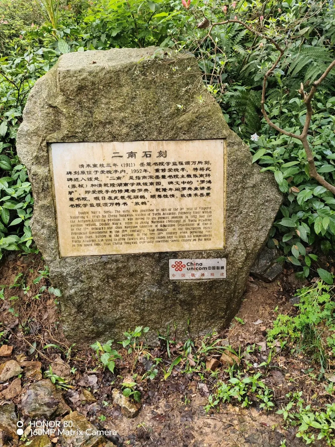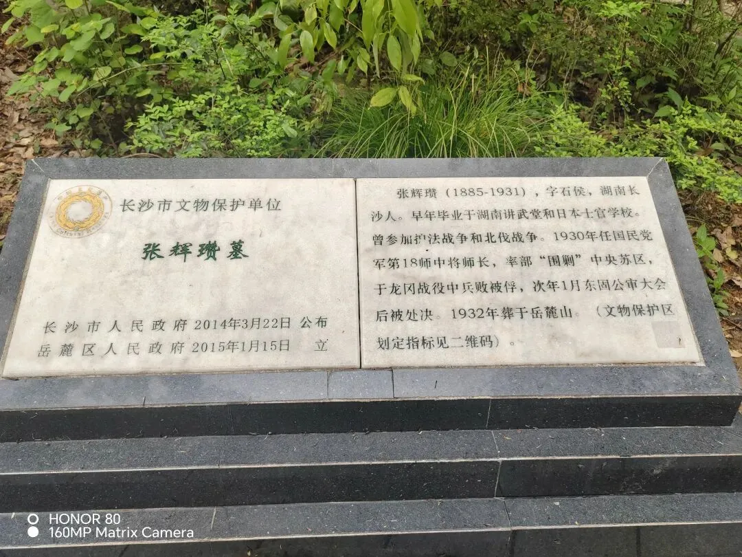 岳麓山是长沙,乃至湖南最好的风水宝地。登岳麓山给我最大的震撼是湖南人对英雄烈士的崇敬。我登山的这条路线,沿途有十多位烈士先贤长眠在岳麓山向阳的山坡上。湖南人慷慨地把最好的风水宝地,留给了为改变中国命运悍不畏死的烈士。 在山路边,我看到一个规模不小的墓地。走近一看,是“张辉瓒墓”。我记忆的闸门突然打开。张辉瓒?那不是率部围剿中央苏区红军,兵败被俘,后来被苏维埃政府枪决了国民党军官吗?小时候背诵毛泽东的诗词《渔家傲·反第一次大“围剿”》,其中有“雾满龙冈千嶂暗,齐声唤,前头捉了张辉瓒”一句。当时不明所以,只记住了张辉瓒这个名字。没想到五十多年后在岳麓山竟能和他邂逅。 张辉瓒墓现在是长沙市文物保护单位。看了墓地旁的石刻介绍,我对岳麓书院半步斋匾额上“实事求是”四个大字有了更深的认识。 张辉瓒是国民党的高级将领,1930年率领国民党军队参加了对中国工农红军的第一次围剿。被红军将士活捉,最后被处决。这是他个人的悲剧。但是,在此之前,特别是在参加护法战争和北伐战争中,他对中国社会的发展是做出过贡献的。我发自内心为湖南人“实事求是”的精神,为他们没有选择性遗忘张辉瓒的历史功绩点赞! 山不在高,有灵气,有文化底蕴则名。登顶岳麓山,顿有“一览众厦矮”之感。湘江两岸的高楼大厦像一块块积木陈列在长沙这片神奇的土地上。那片舒展在湘江中的柳叶,就是我们下午要游览的橘子洲。