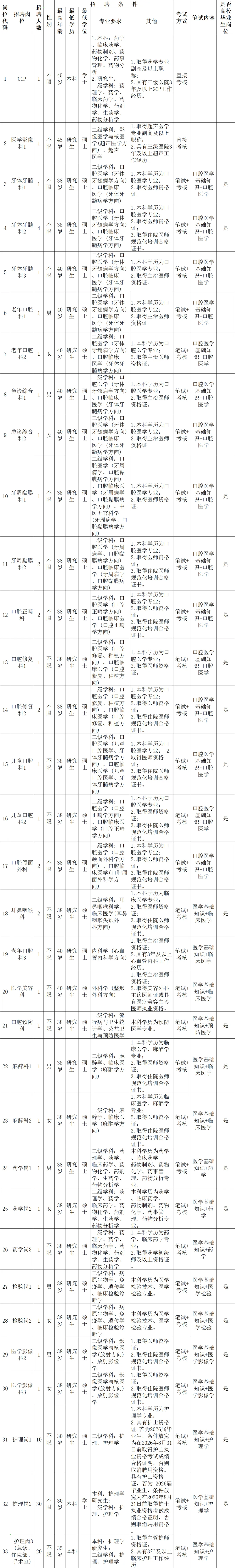 (3)岗位代码见《2026年长沙市口腔医院第一批自主招聘工作人员岗位表》(附件1),下同。