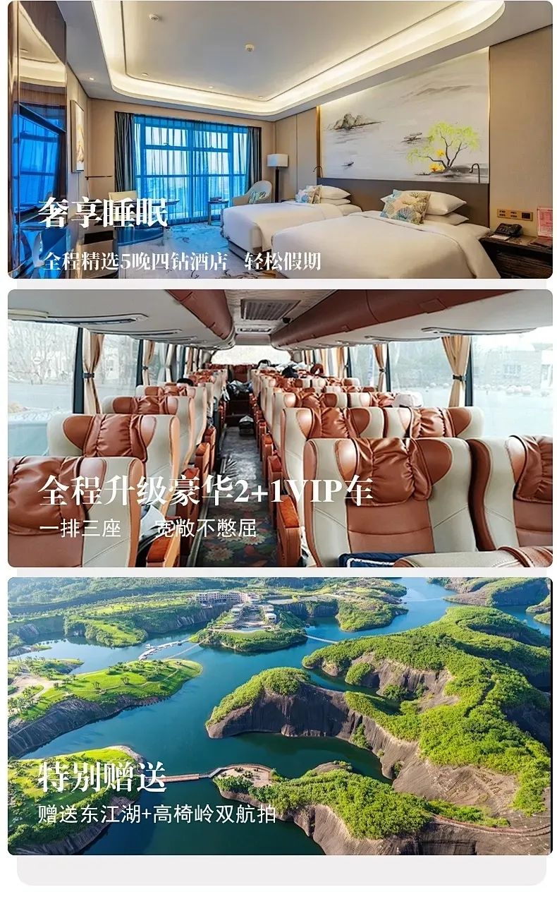 【用餐标准】全程5早8正;(标准:酒店含早,正餐:40元/人.自愿放弃恕不退费)其中3顿为特色餐(三文鱼宴+簸箕宴+十全十美宴);若看东江湖早雾则需要打包早餐。