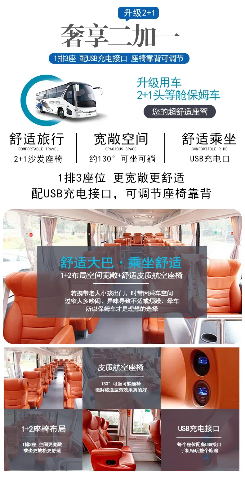 【用 车】当地2+1航空座椅空调旅游车,保证一人一正座;