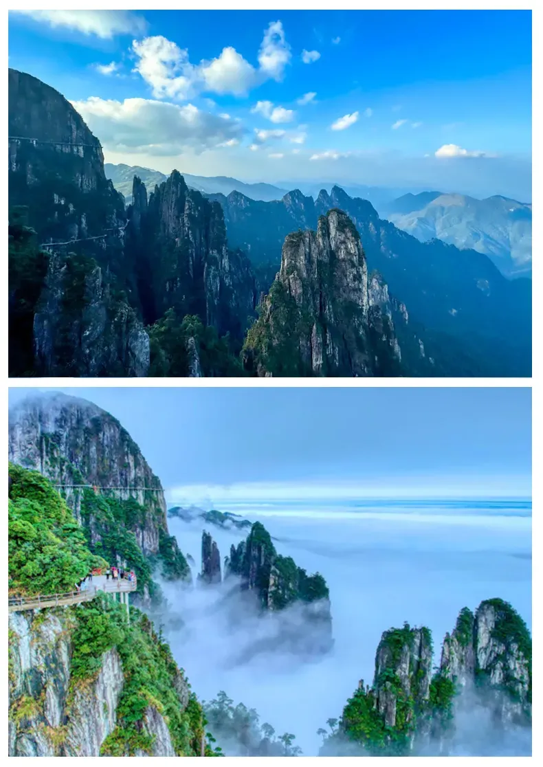 因酷似张家界,而被游客称为湖南第二张家界莽山·五指峰景区,奇松、怪石、险峰俯仰皆是;云海、飞瀑、温泉大有可观;奇花、异草、珍禽。萌兽时而可见,更有控制系统世界最先进、海拨1600米的悬崖电梯,让您酣畅乐游,移步换景,步步震撼。
