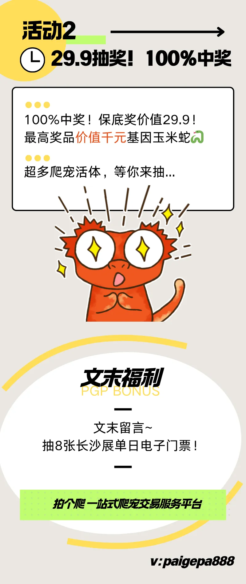 >长沙展抽门票 | 4月10-12日 拍个爬免费套圈 、抽奖赢活体 持续进行中!