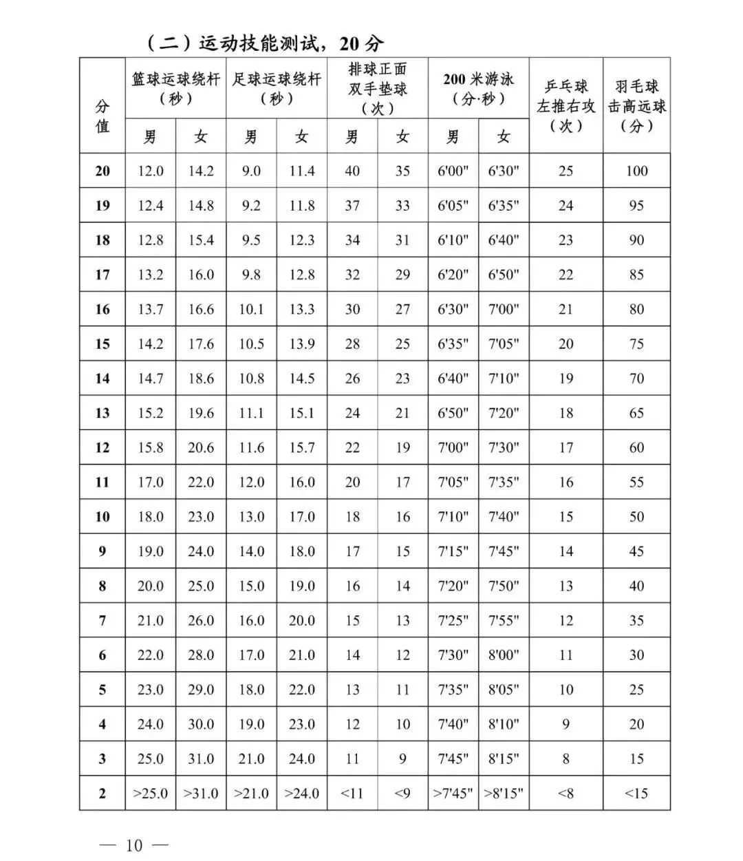 男生 1000 米跑、女生 800 米跑,在所有素质、技能项目完成后统一测试。