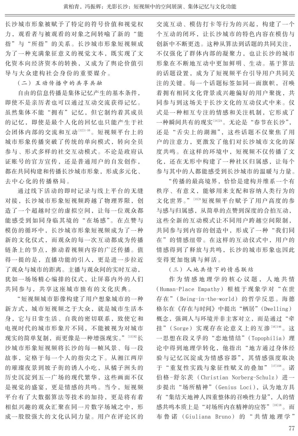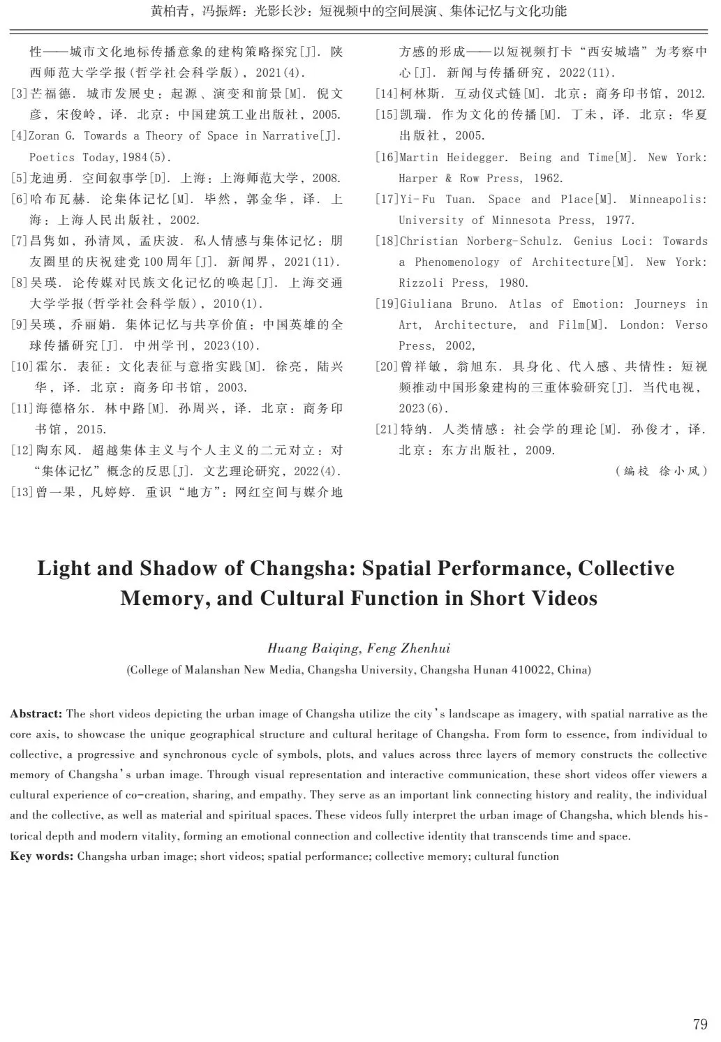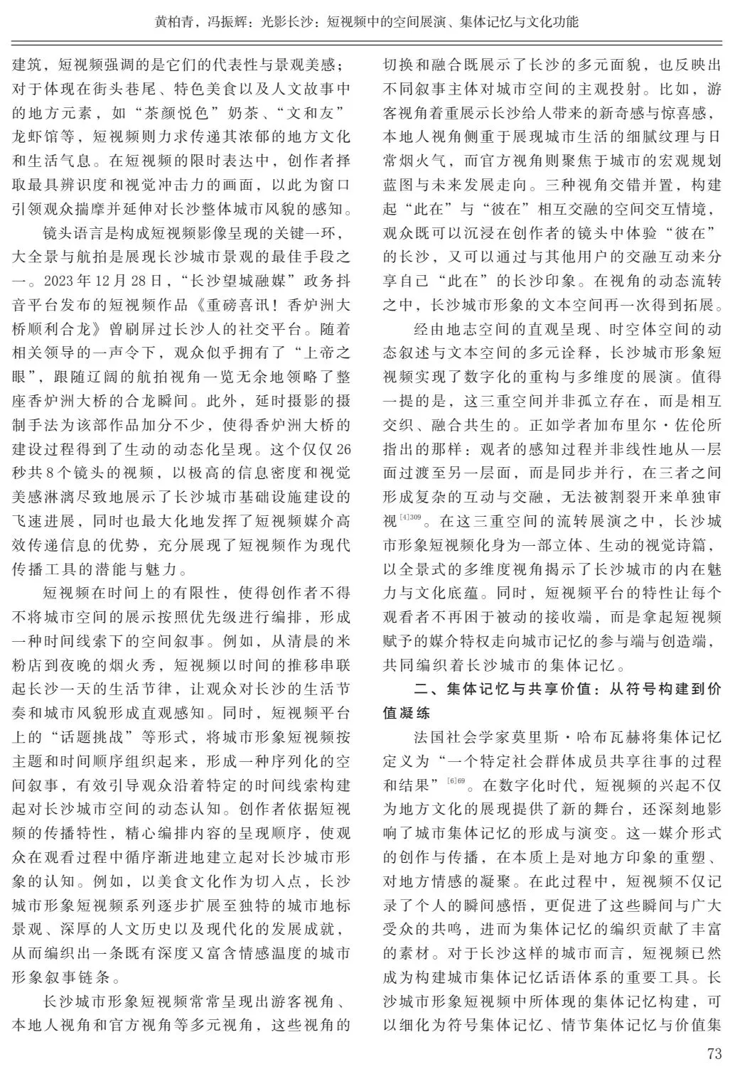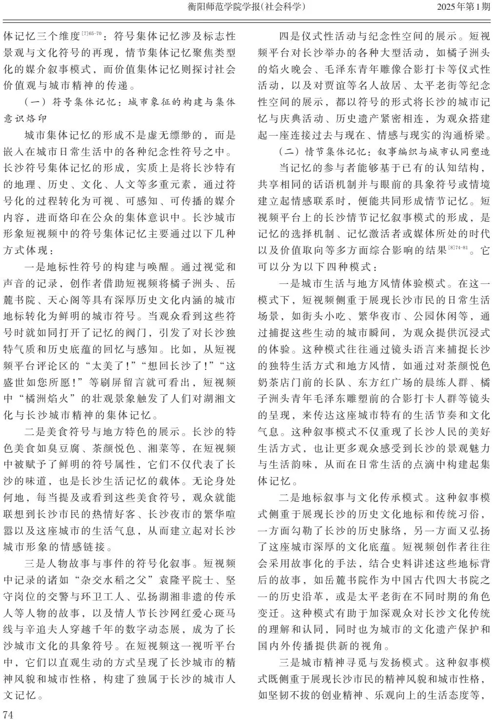 关键词:长沙城市形象;短视频;空间展演;集体记忆;文化功能