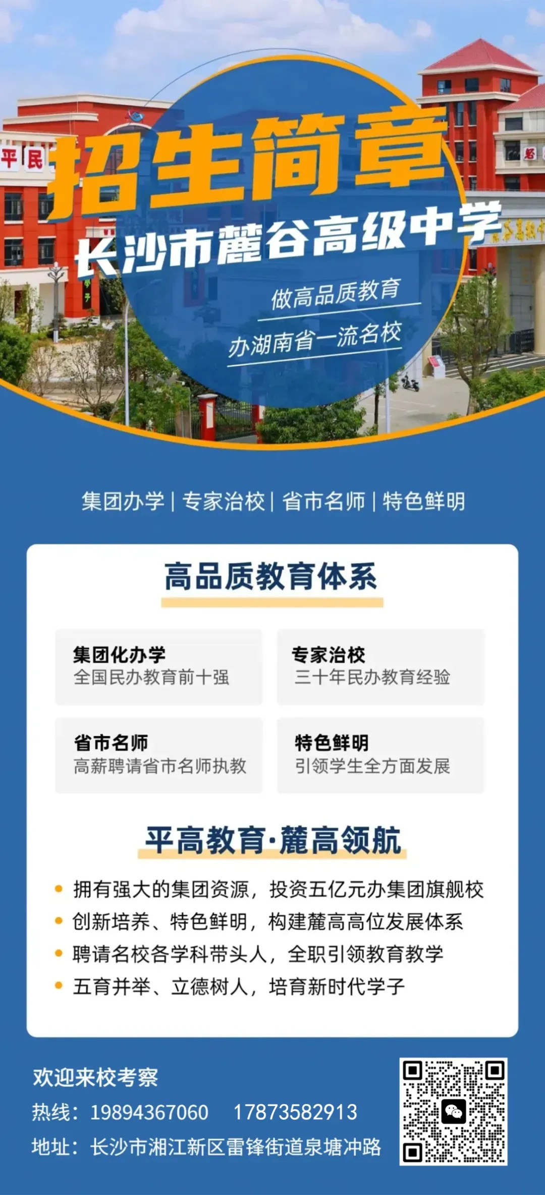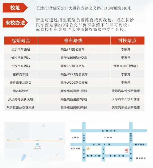 学校地址:长沙市湘江新区雷锋街道泉塘冲路(金洲大道与许龙路交汇处)