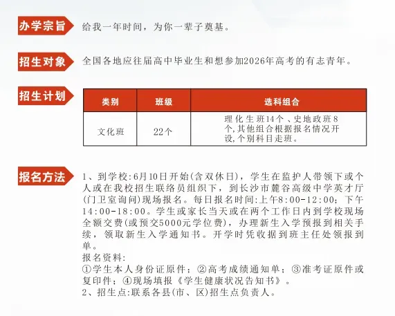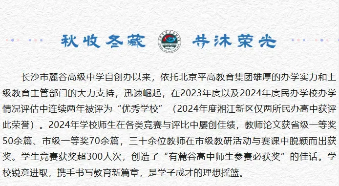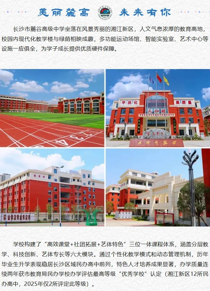 为满足社会对我校就读的学位需求,长沙市麓谷高级中学2025年秋季招收高复新生。现将有关招生信息公告如下: