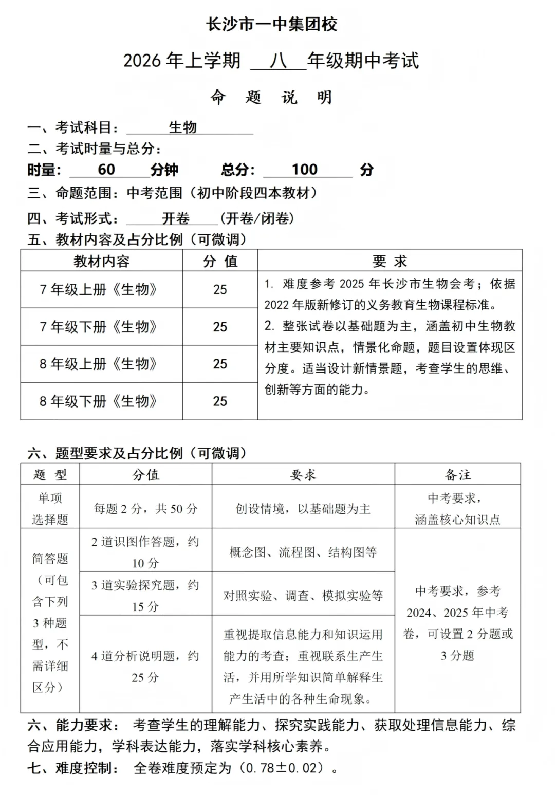 附一中集团初二命题说明