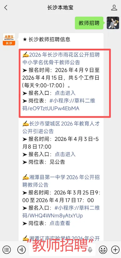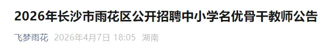 长沙市雨花区公开招聘教师啦