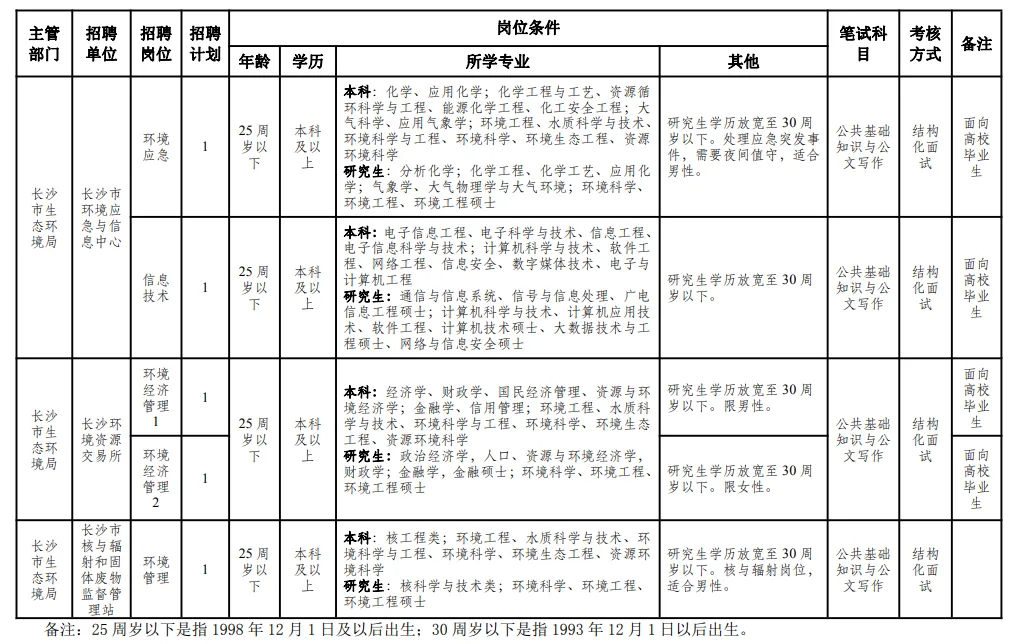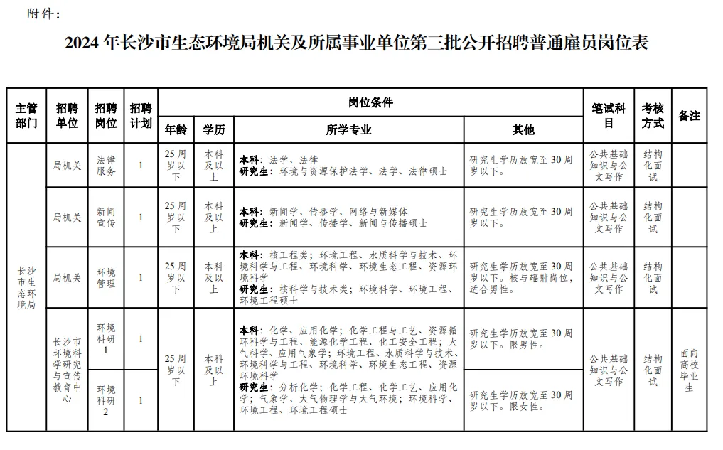 附件:1.2024年长沙市生态环境局机关及所属事业单位第三批公开招聘普通雇员岗位表