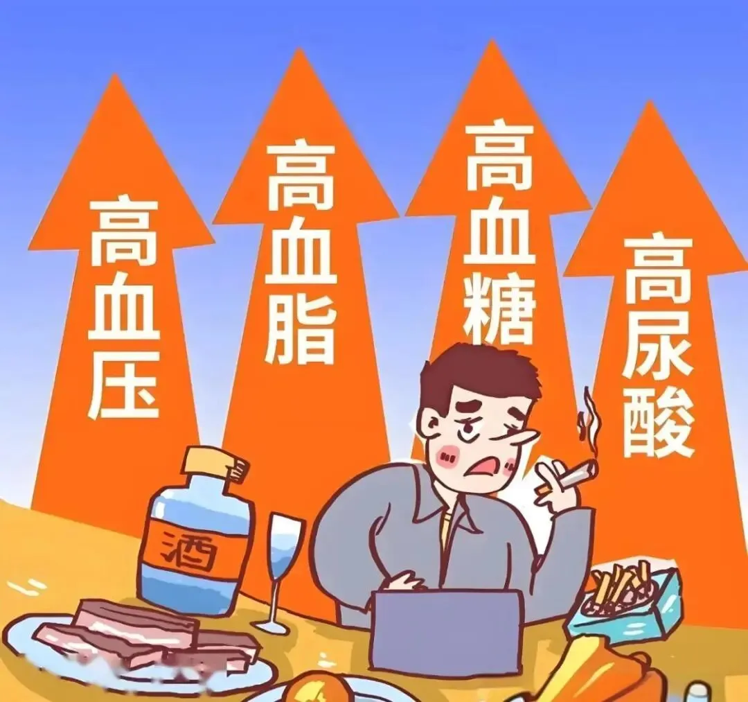 痛风常常伴随高血压、高血脂、2型糖尿病等代谢综合征,这些疾病相互影响、相互加重,会增加痛风的治疗难度。
