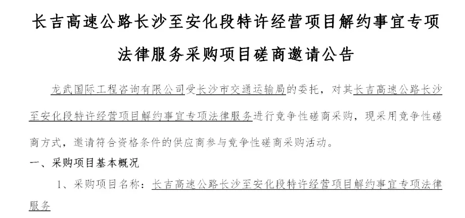3月30日,长沙市交通运输局突然发布公告,正式宣布长吉高速公路长沙至安化段特许经营项目将与中铁系联合体解除合作协议。