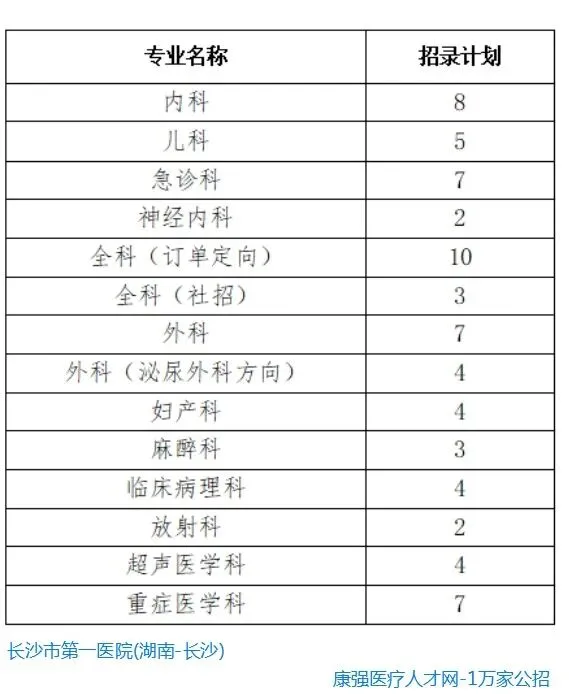 长沙市第一医院2026年住院医师规范化培训招生简章