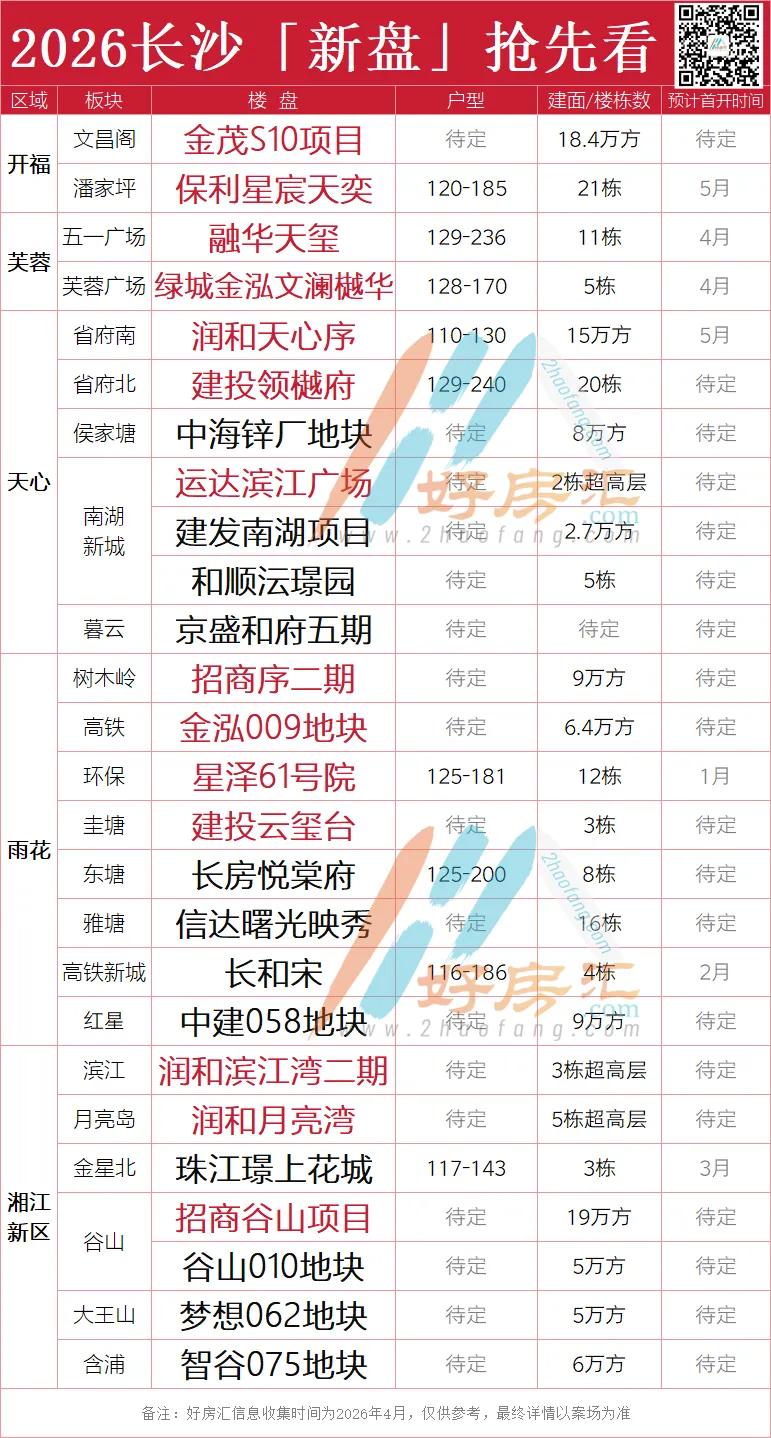 一、回归主城:今年新盘集中在河东,尤其是在主城区!河西的刚需、刚改产品的新增供应量暂时不多,且都以大平层、别墅项目为主。二,鼎豪崛起:明年主城新盘将以改善、鼎豪为主,尤其是江景大平层和别墅,有润和、运达、建发、招商、和顺等新盘入市,长沙房价天花板有望再度刷新!(S10、滨江C8C9等地块也有望出让)三、新规祛魅:由于今年新盘都将是新规产品,受政策限制户型差异化将大幅缩小,而将更卷地段、卷配套、卷品质、卷运营。(听劝,不要再只盯着户型了)四、书包重要:今年长沙大半的新盘都标配“双书包”,甚至连寸土寸金的五一广场,今年都破天荒有了带双书包的新盘(融华天玺)。书包可以暂时不强,但最好一定要有。(除了少数鼎豪)在长沙,如果你想了解任意楼盘/板块,扫码加主编微信,为您综合分析↓
