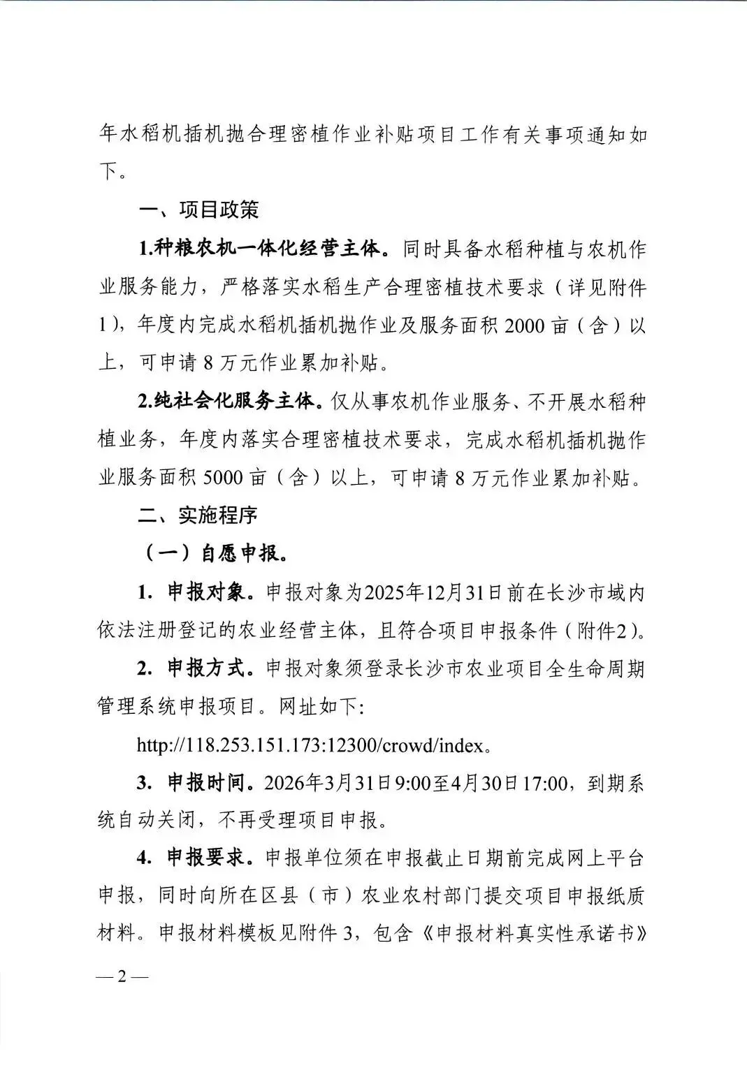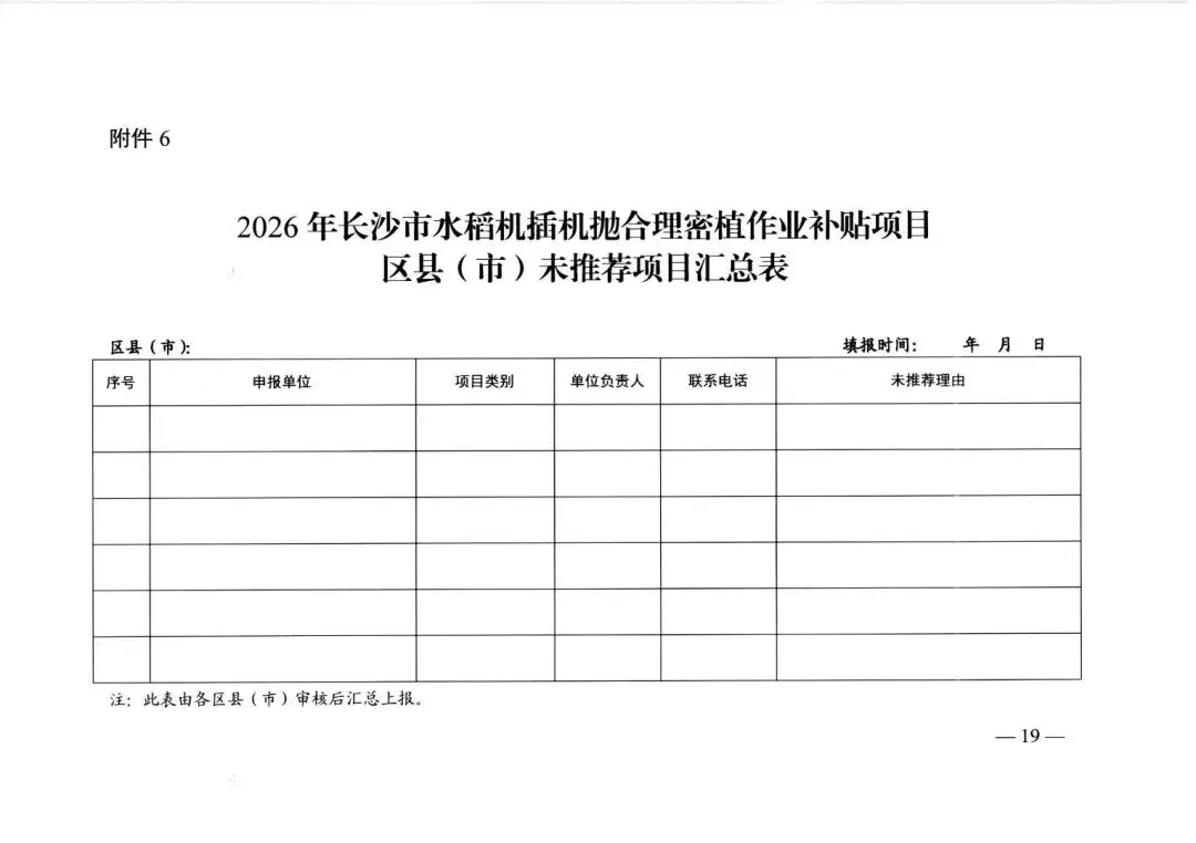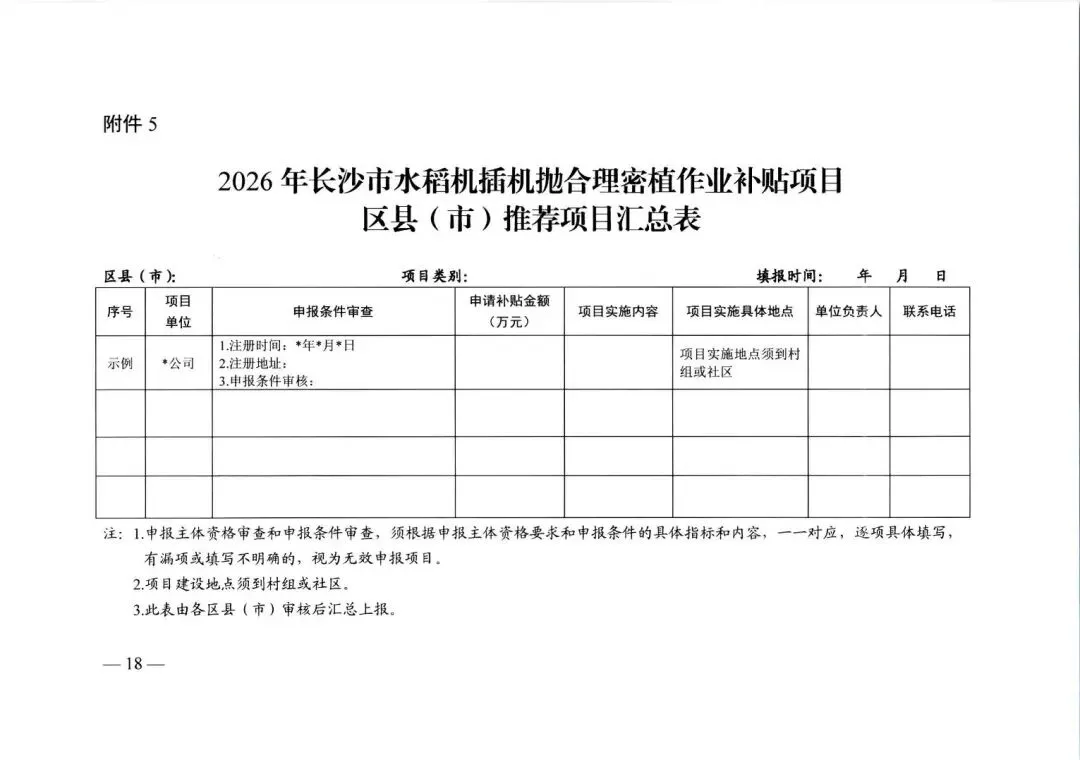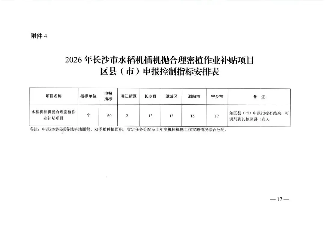 >长沙市 关于组织做好2026年水稻机插机抛合理密植作业补贴项目的通知