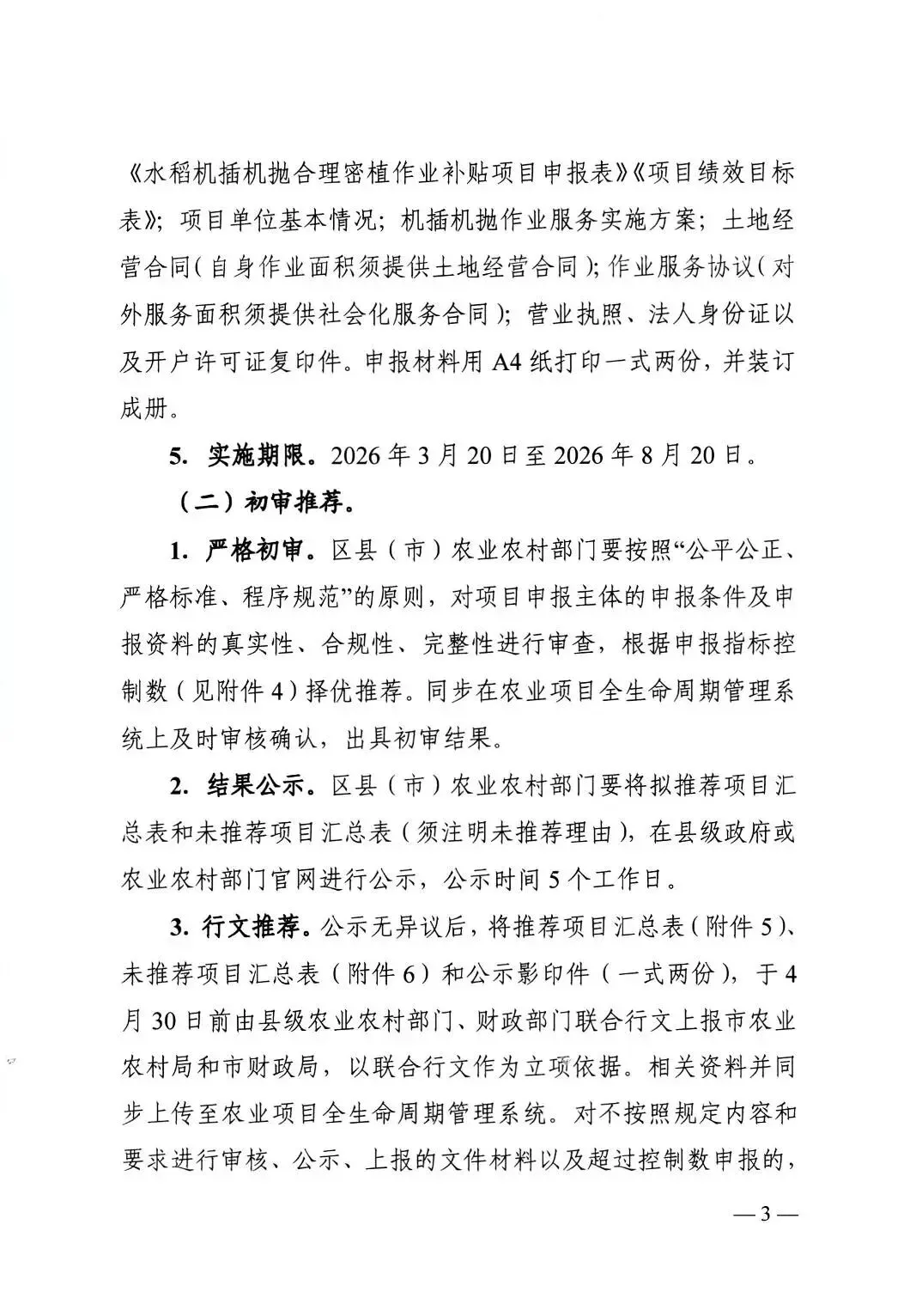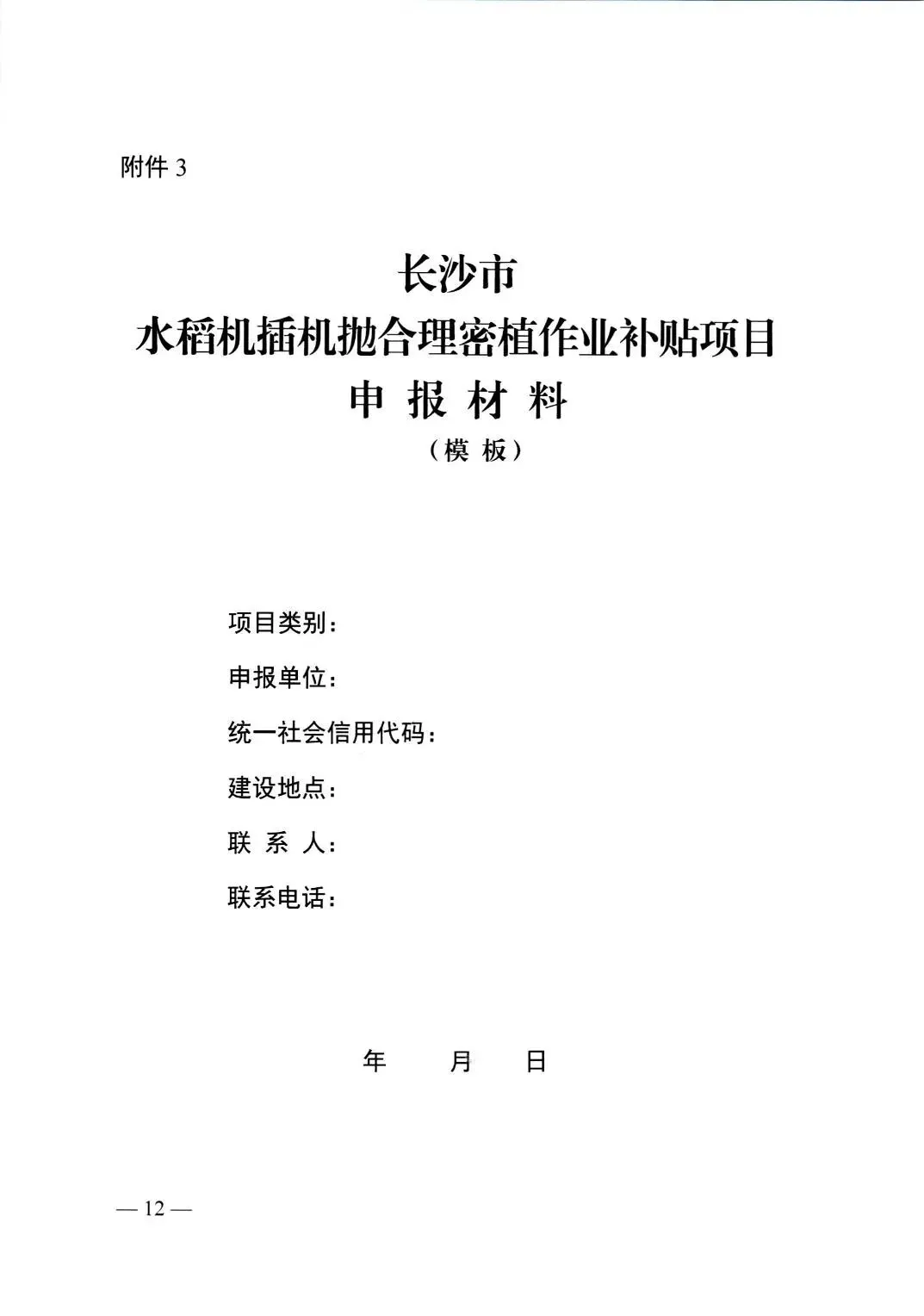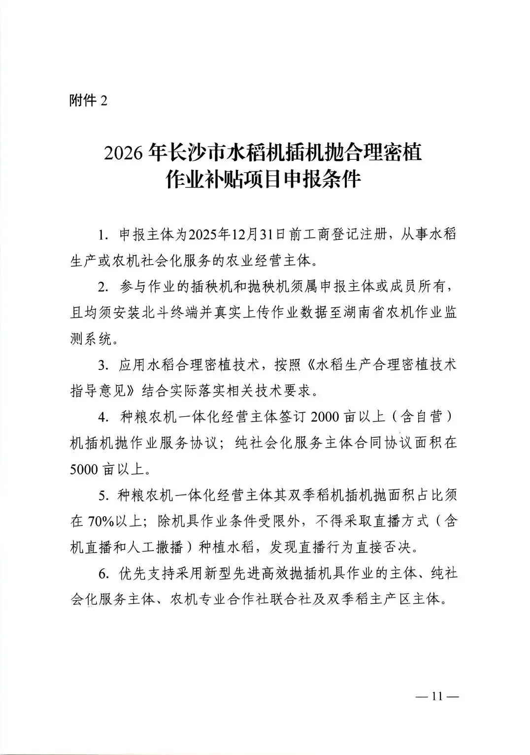 >长沙市 关于组织做好2026年水稻机插机抛合理密植作业补贴项目的通知