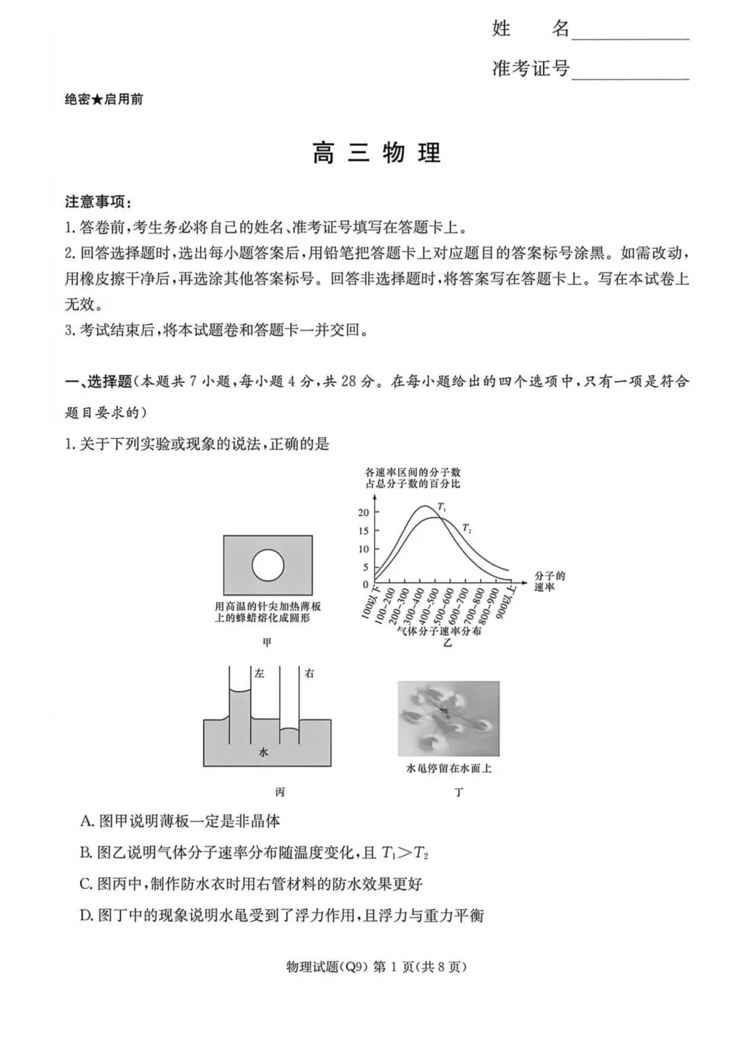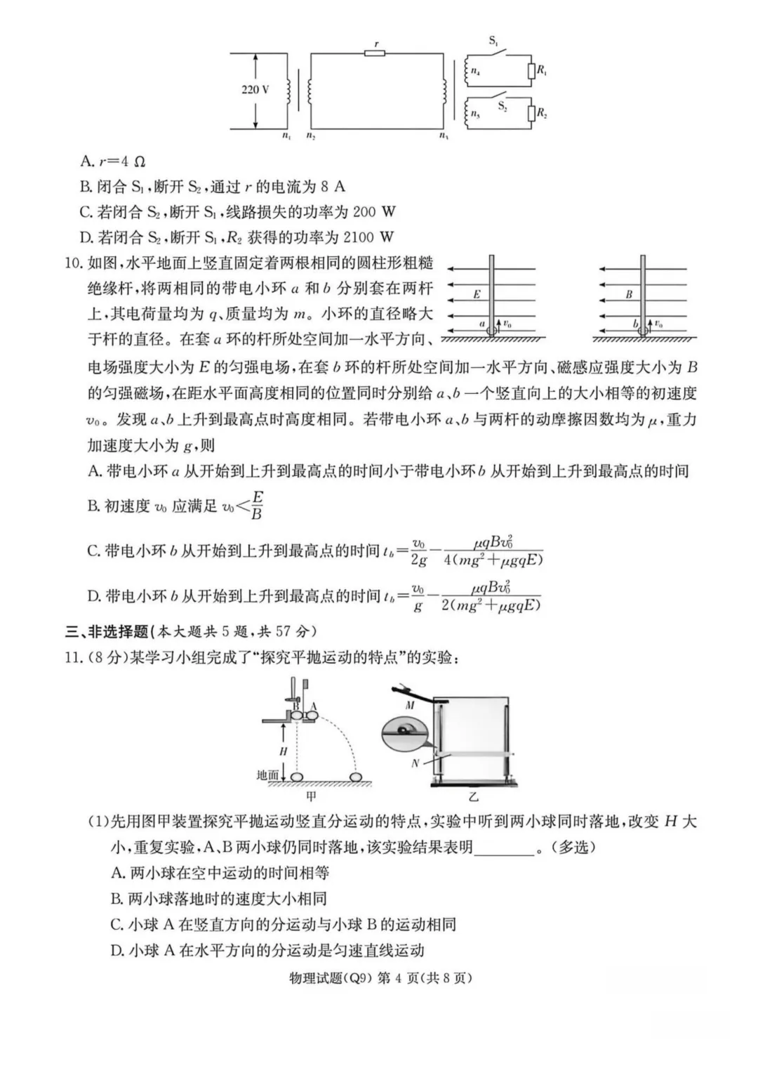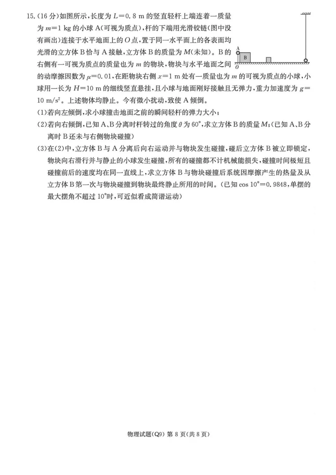 作者寄语:湖南长沙一中2026届高三下学期第九次月考物理试卷+答案,7天有效领取,手慢无!!!