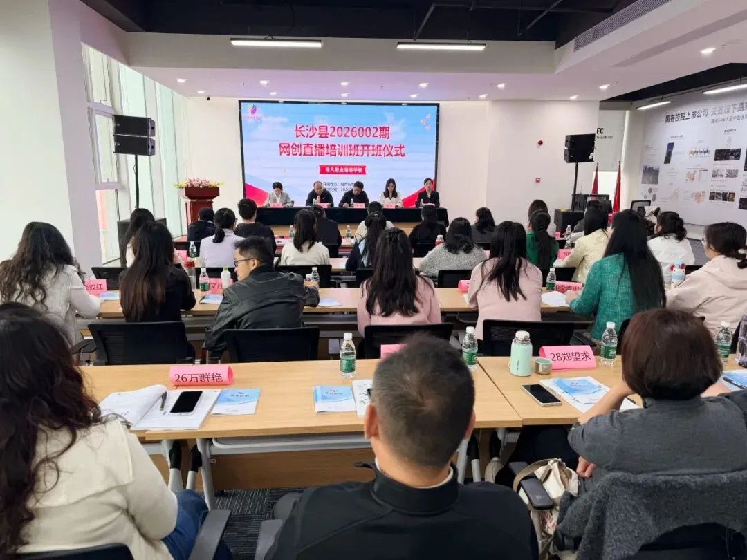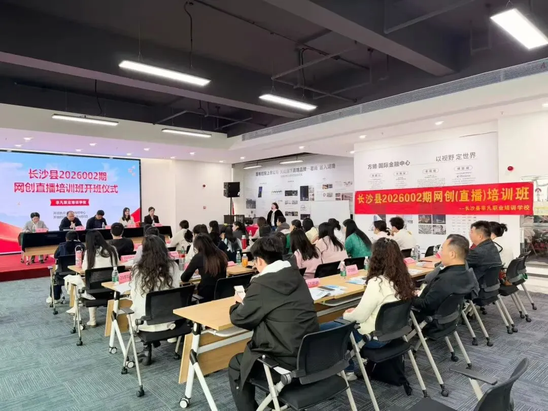 本次培训最大亮点是政校企商“四位一体”联动,为学员提供“零成本”创业赋能。非凡职校校长张淼在开班仪式上介绍,本期课程由政府全额补贴,学员无需花费一分钱,就能在真实商场场景中学直播、真带货、拿证书,是四方联动助力就业创业的生动实践。星沙街道民生事务办李雁主任现场表态,街道将做好“店小二”式服务,“从学技能到找工作、再到自己创业,我们把全链条服务都想到、做到位。”长沙县人社局就业促进科汤帅科长表示,直播电商是拉动消费、促进就业的新引擎,希望学员珍惜机会,机构和商场把控好培训过程中的质量及后续落地服务。