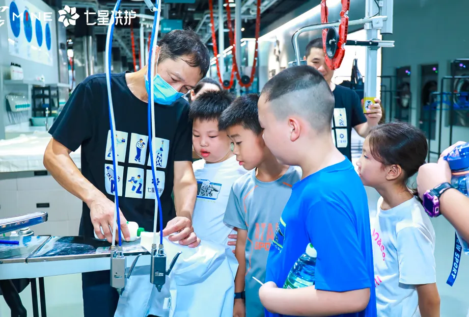 你印象中的工厂是什么样的?是尘烟弥漫、人声喧闹?还是厂房林立、机器轰鸣?但它其实是这样的:汇集全球顶尖洗护设备,全场线路智能传送,洗涤自动配给,O2O系统智慧互联。每一件织物洗护完毕,都会经智能吊挂系统,送往下一工位,杜绝相互堆叠。熨烫好一件衬衣只需15秒,整理好一件西装不超过半分钟。这是全球只有长沙才有的智能洗护工厂。让我们带着孩子们一起走进梦洁七星洗护工厂,看“梦工厂”的“智能制造”,看衣服如何在这里被赋予第二次“生命”。在这里,孩子们可以聆听老师讲解洗护行业的发展史,了解洗护发展的前世今生,包括从远古到现代智能化的洗护演变过程及现代智能化的作业方式。能帮助孩子们掌握学习与生活相关的知识,锻炼孩子们的生活及动手能力,可实践设备操作、去渍实验等,体验生活的奇迹与技巧。