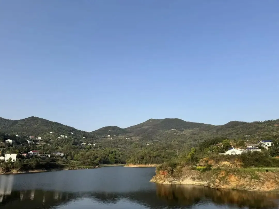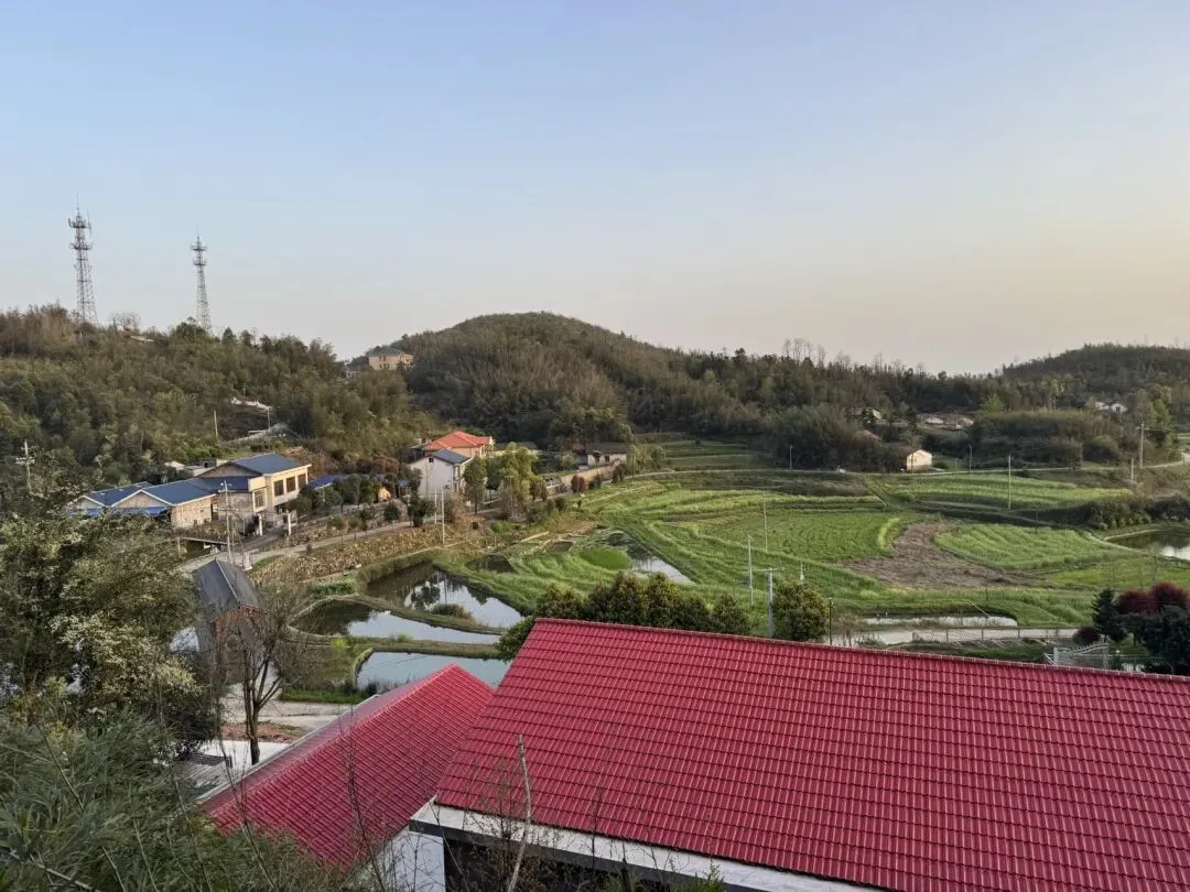 参观完任弼时故居后,我们驱车前往影珠山,十几分钟便抵达了山脚下的水库。站在水库边,抬头望去,山上错落有致地分布着不少房屋。来之前听朋友说影珠山可以直接开车上去,当时以为是一句玩笑话,直到亲自前往才发现确实如此。从汨罗方向开车上山,道路为单向车道的水泥路,弯道较多,坡度较陡,白天走还好,晚上不建议走这条路。在山地缓坡上,村庄错落分布,树林疏密有致,房屋星罗棋布,点缀其间,祥和安静,宛如世外桃源。让我想起上大学时,去一位凤凰的同学家做客。他说他家住在山上,每天都能看日出日落,我当时还半信半疑。等真的到了才发现,果然如此——他家虽在山上,地势却格外平缓,放眼望去,竟像置身平原一般。从汨罗方向上山的车很少,整条山路几乎只有我这一辆车行驶,因此无需会车,得以从容停车,悠然欣赏沿途风景。这里仿佛是神仙居住的仙境,每一处风景都如电影大片般震撼,让我忍不住将手机调至摄像模式,定格住每一处美景,永久珍藏。耳边不时传来鸟鸣与蛙声,与沿途的风景交织融合,构成了一幅生机盎然的春日画卷。山间农田里,牛儿怡然自得地啃食青草,勾勒出一幅迷人的田园风光图。这个角度看绝美,尤其配上这个红色屋顶的房子,有点像是在瑞士的感觉。影珠山,真是大隐于市,我竟今日才知此山,才至此地,顿觉来晚矣。
