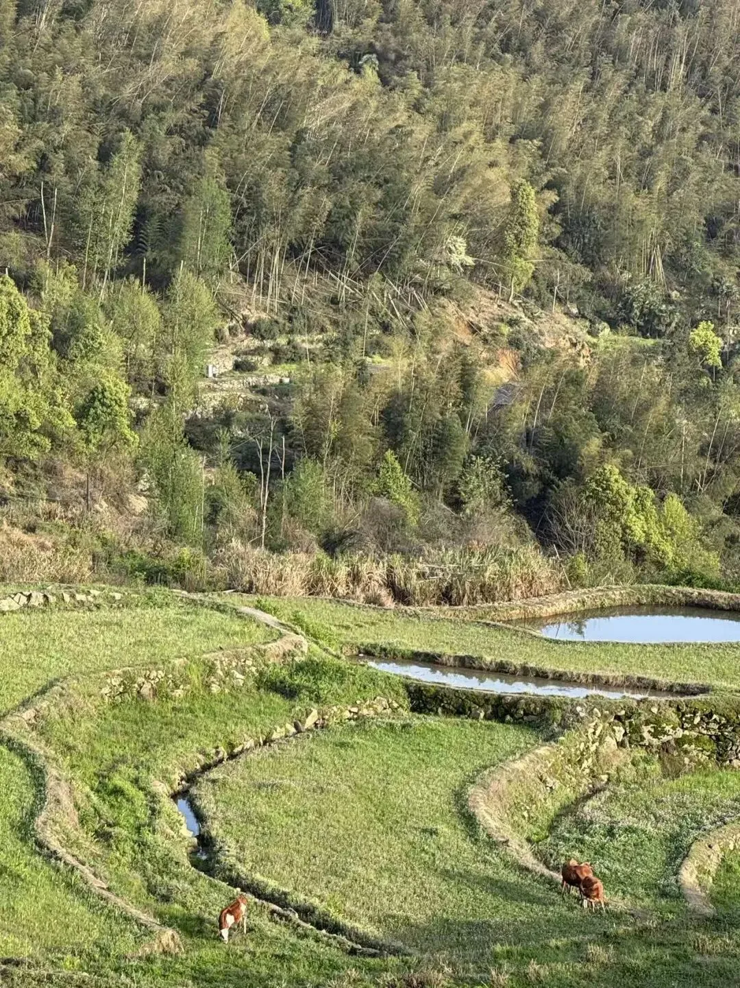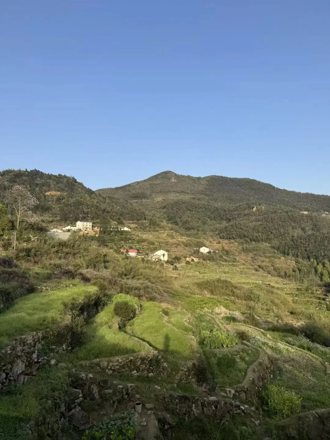 路上我一直在想,影珠山难得的是商业化程度不高,没有过度开发,基本还保持着原生态的风景和乡村田园风光。影珠山美在田园风光,层层梯田从东坡一直蔓延到山顶,间以石径农舍,竹篱瓜棚,池塘果树。✅ 实用贴士