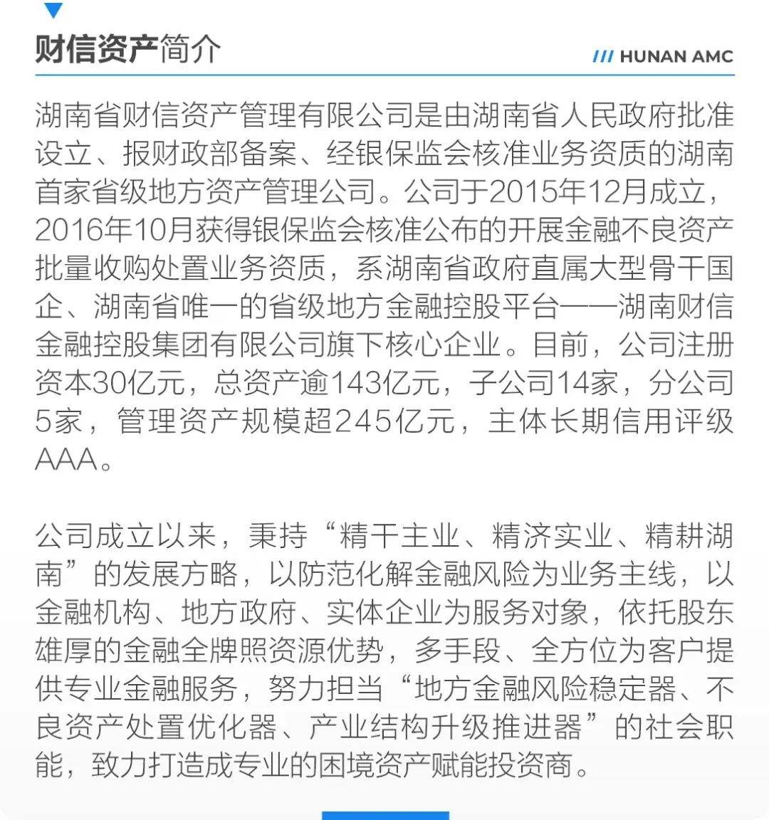 未来,财信资产将在财信金控的支持下,以此次获奖为契机,推动旗下长沙分公司坚守“化解个人金融风险、维护地方金融稳定”的初心,深耕个贷不良业务领域,加大科技创新投入,优化数字化、智能化业务模式,提升服务质效,为地方金融稳定、实体经济发展贡献更多财信智慧和财信力量。